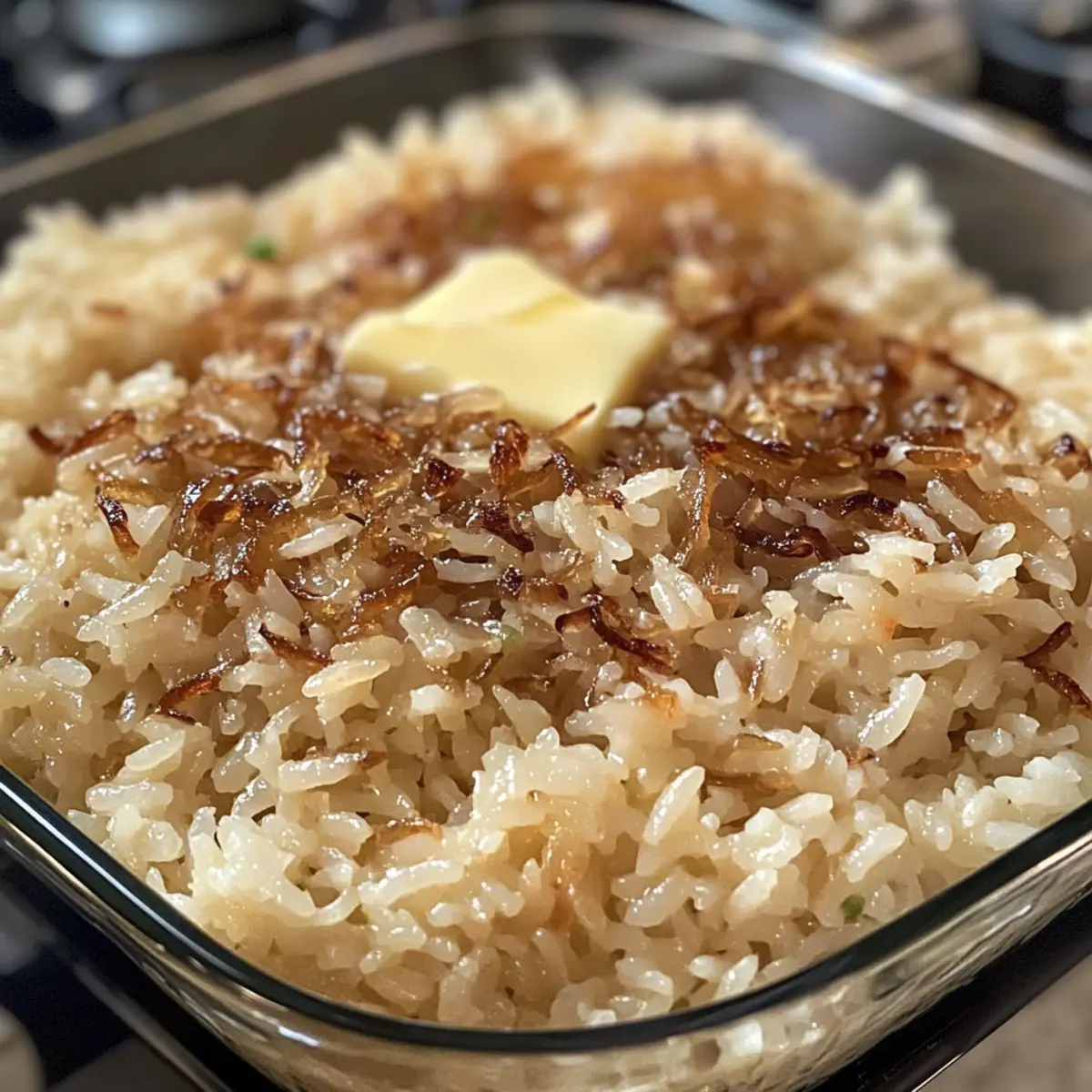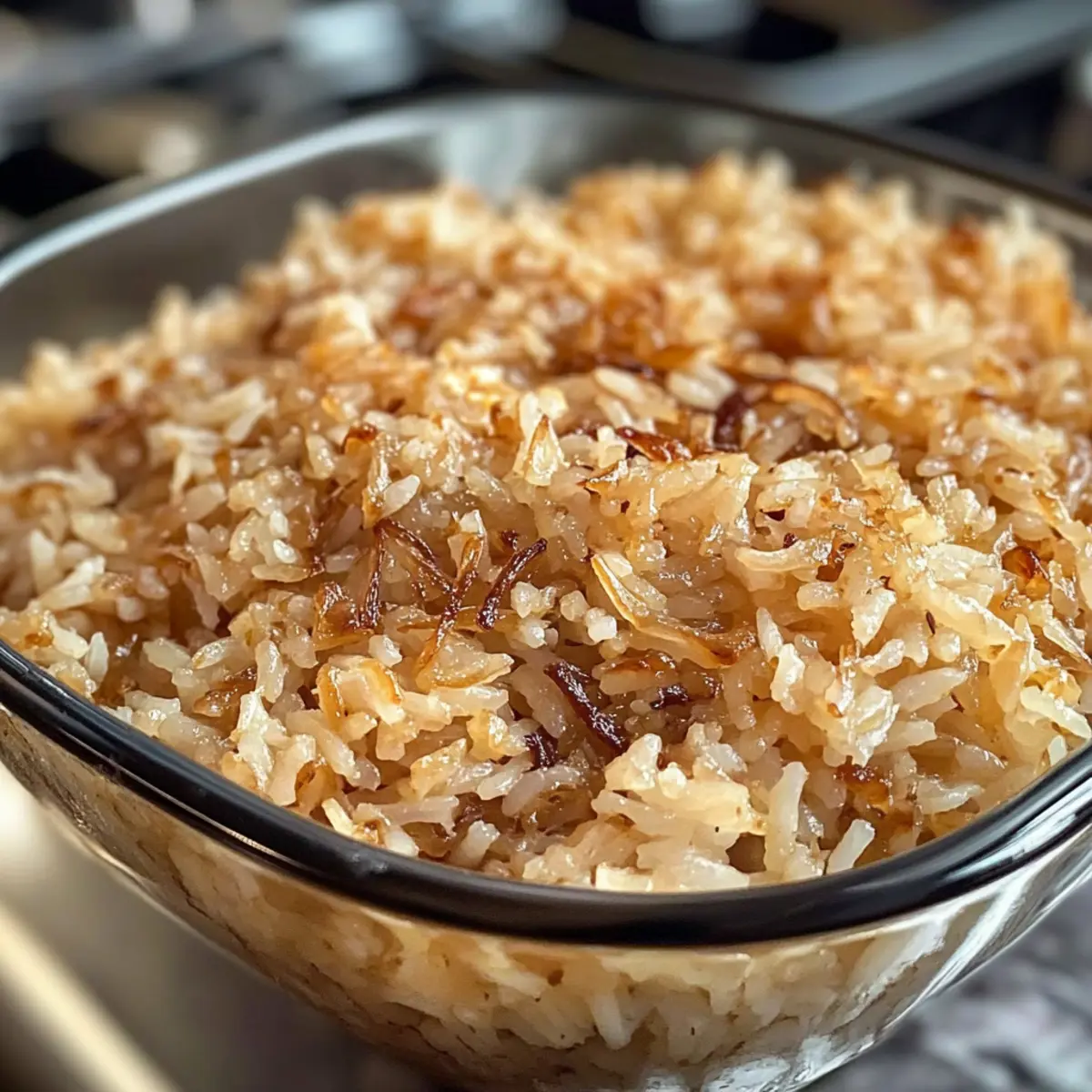 Perfekte Komfortbeilage: Ideal zu gegrilltem Fleisch oder als Teil deines Festessens – dieser Zwiebelreis begeistert alle.