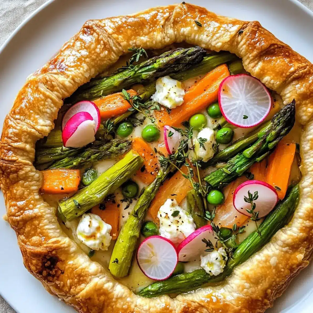 Ein erfrischender Duft wehte mir um die Nase, als ich meine Küche mit einer Kombination aus frischem Spargel, knusprigen Radieschen und süßen Erbsen füllte. Diese Frühlingsgemüse-Galette mit Ziegenkäse ist nicht nur eine Augenweide, sondern auch der perfekte Weg, um die Aromen der Saison zu feiern. Mit einem buttrigen, zarten Teig und einer cremigen Füllung, die jeden Biss zu einem Genuss macht, ist dieses Gericht sowohl ein Hit beim Brunch als auch eine leichte Abendmahlzeit. Ganz gleich, ob du Gäste bewöhnen oder einfach deine Liebe zur saisonalen Küche ausleben möchtest, diese Galette wird sicher allen schmecken. Was könnte besser sein, als eine köstliche, rustikale Speise, die in unter einer Stunde zubereitet ist? Lass uns zusammen herausfinden, wie zu dieser perfekten Frühlingsfreude!