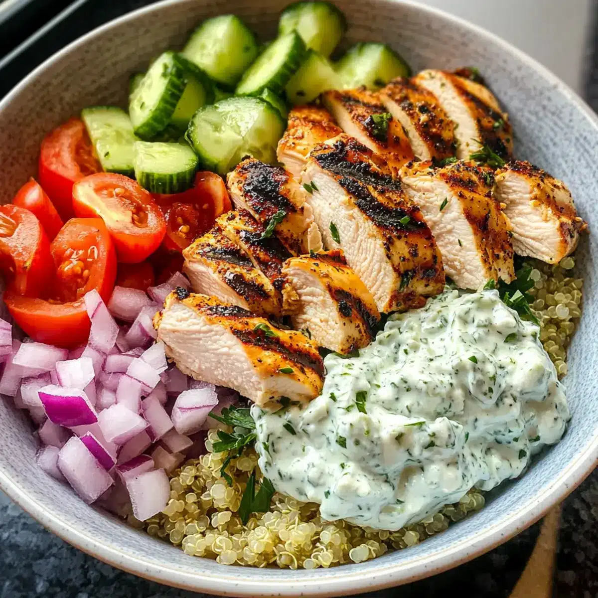 Griechische Hähnchen-Schalen mit köstlichem Tzatziki