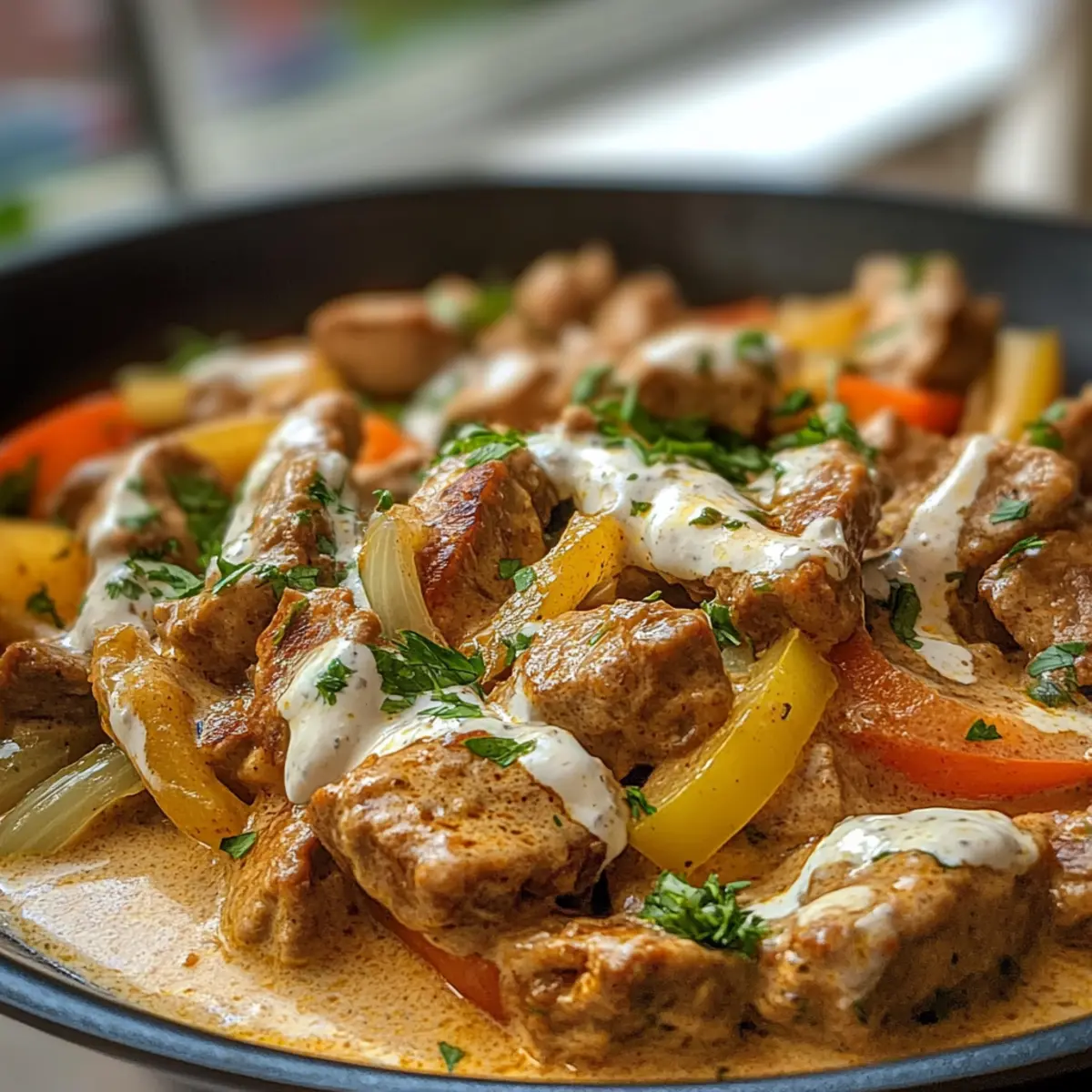 Cremige Gyros Pfanne mit Frischkäse genießen