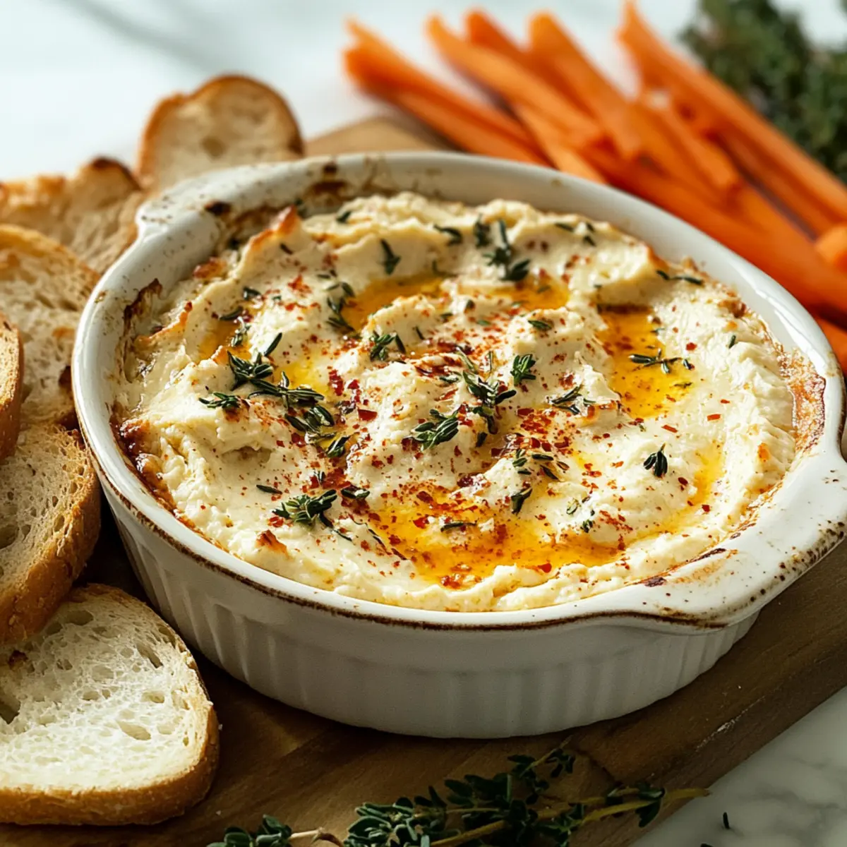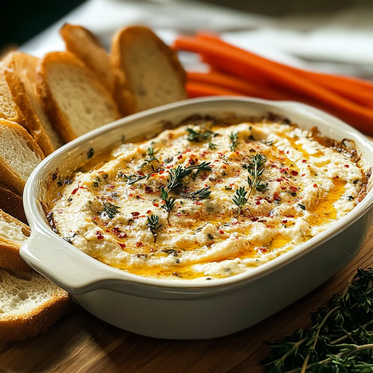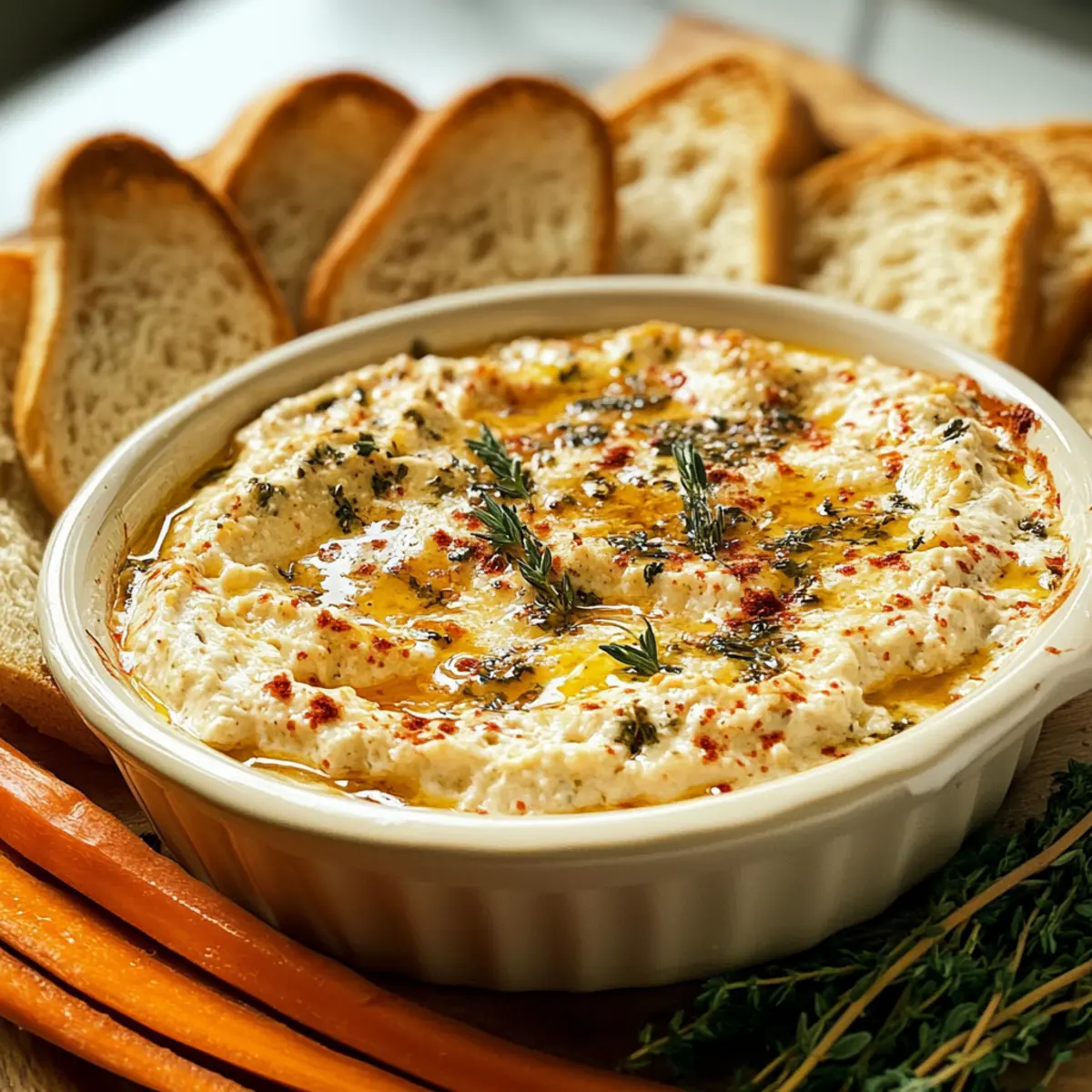 - Geröstete Baguettescheiben – Perfekt zum Eintunken in den Dip.