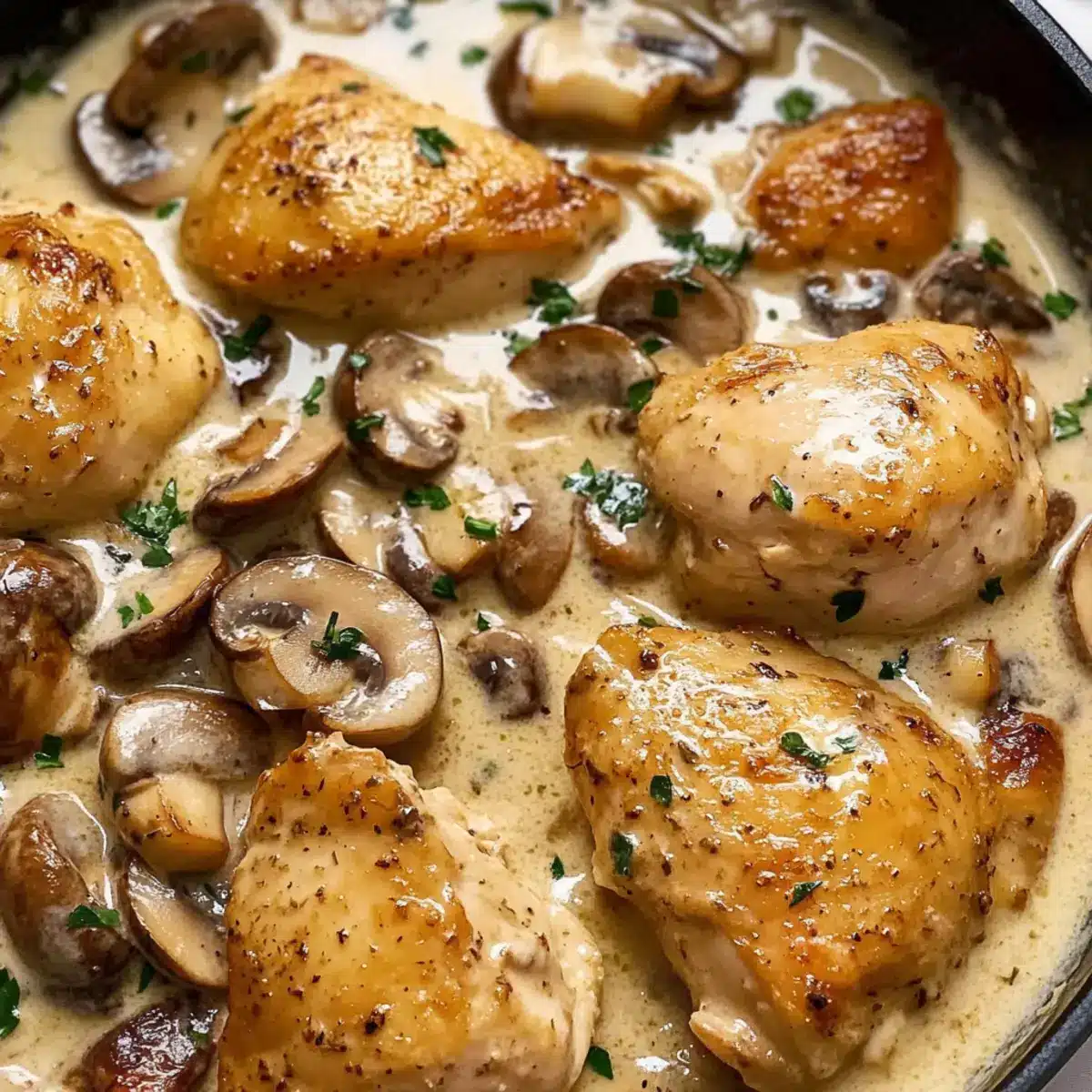 Für das beste Ergebnis solltest du frisches, hochwertiges Hühnchen verwenden, idealerweise Haut- und Knochenstücke wie Oberschenkel und Keulen. Diese sorgen für mehr Geschmack und Saftigkeit. Achte darauf, dass die Champignons fest und trocken sind – vermeide solche mit dunklen Flecken oder Schleim. Frische Kräuter wie Thymian und Petersilie tragen ebenfalls zur Intensität des Geschmacks bei.