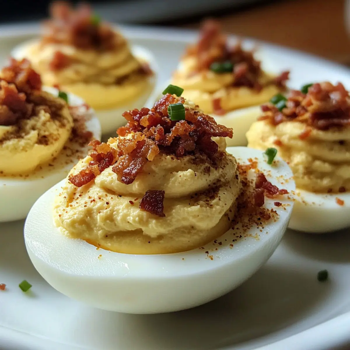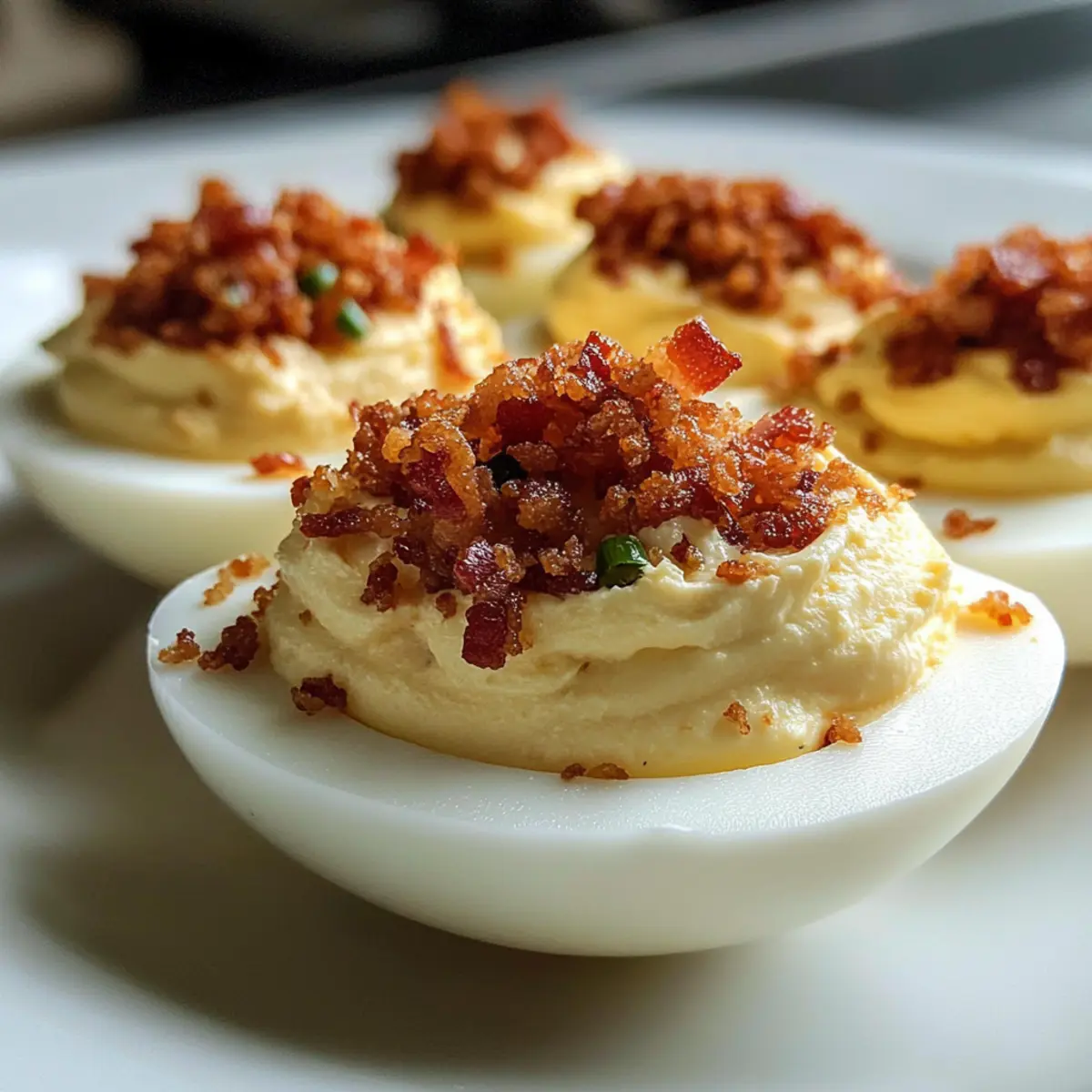Einfachheit: Das Rezept ist kinderleicht und benötigt nur grundlegende Kochfähigkeiten. Reichhaltiger Geschmack: Die Kombination aus cremigem Eigelb und knusprigem Bacon sorgt für ein robustes Geschmackserlebnis. Zuschauerliebling: Perfekt für Partys und Familienfeiern – jeder wird nach mehr verlangen! Vielseitig: Variieren Sie das Rezept nach Ihren Vorlieben, zum Beispiel mit türkischem Bacon für eine leichtere Option oder einem Hauch von Cayennepfeffer für einen würzigen Kick. Einfache Zubereitung: Bereiten Sie die Füllung und die Eiweiße separat vor, um optimale Frische zu gewährleisten. Köstliches Aroma: Jeder Biss ist ein Erlebnis, das Herz und Gaumen erfreut!