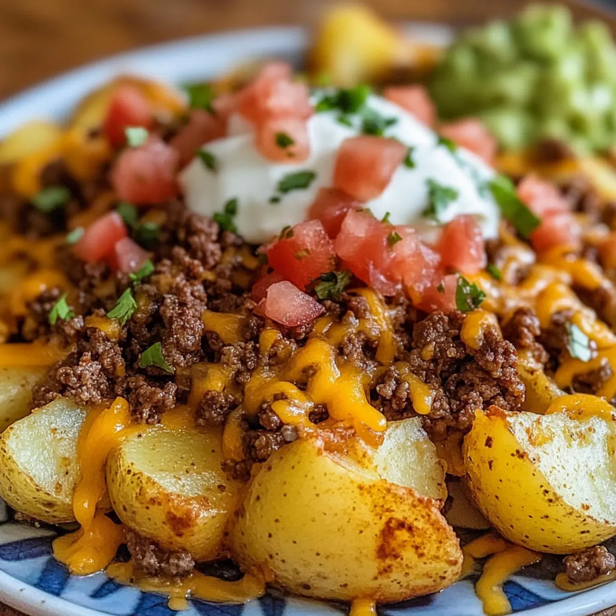 In einem kleinen, gemütlichen Küchenexperiment habe ich die perfekte Kombination aus Kartoffeln und mexikanischen Aromen entdeckt. Diese Käse Taco Kartoffeln verbinden knusprige, gewürzte Kartoffeln mit herzhaftem Hackfleisch und einer schmelzenden Käseschicht, die einfach glücklich macht. Ideal für schnelle Abendessen unter der Woche, erlaubt dieses Rezept nicht nur eine Vielzahl von Anpassungen – von frischem Guacamole bis hin zu würzigem Pico de Gallo –, sondern bringt auch den Komfort von Hausmannskost direkt auf den Tisch. Egal, ob du ein paar Freunde zu einem Snack einlädst oder einfach nur deiner Familie eine Freude machen möchtest, diese köstlichen Kartoffeln sind genau das Richtige! Bereit für ein geschmackliches Abenteuer? Lass uns loslegen!