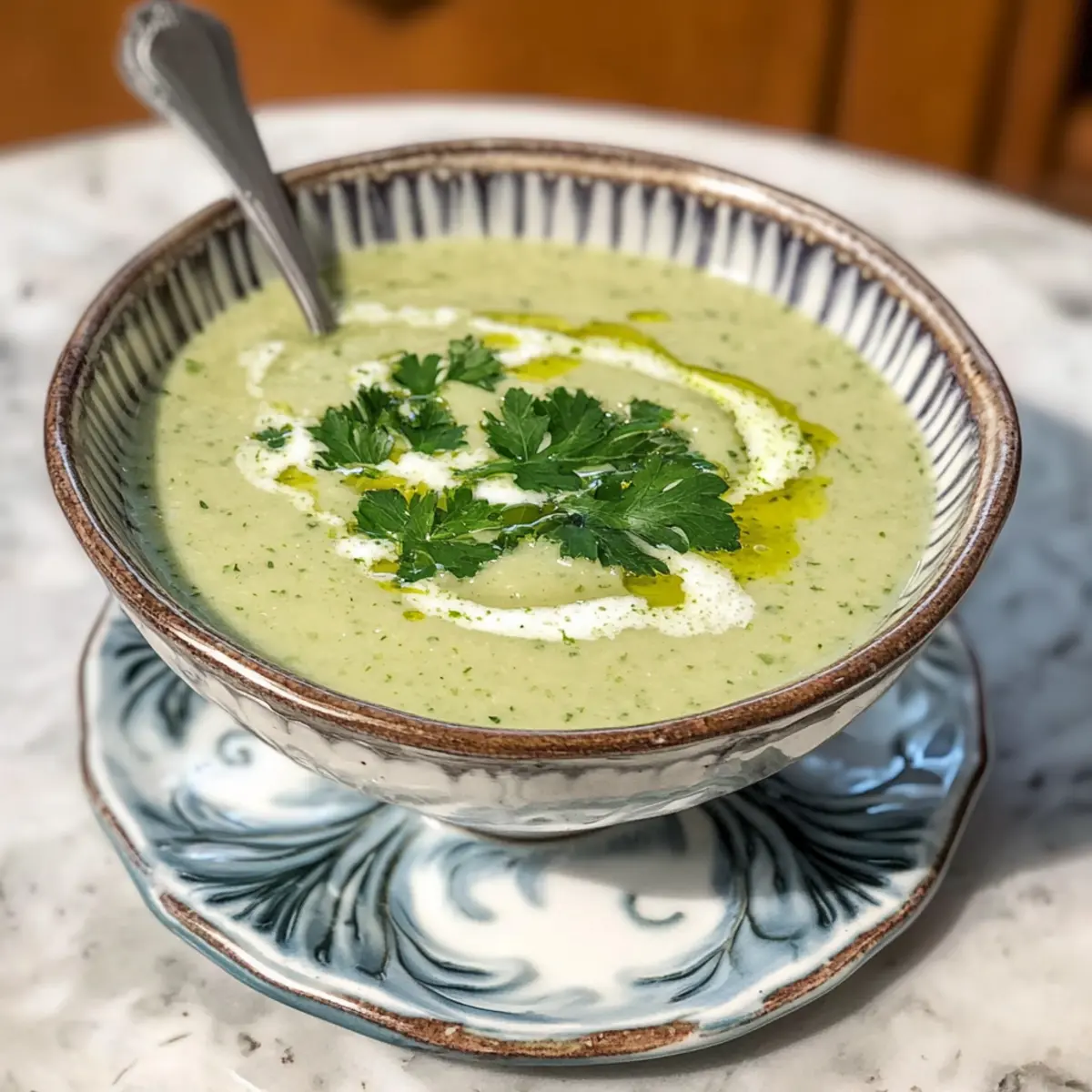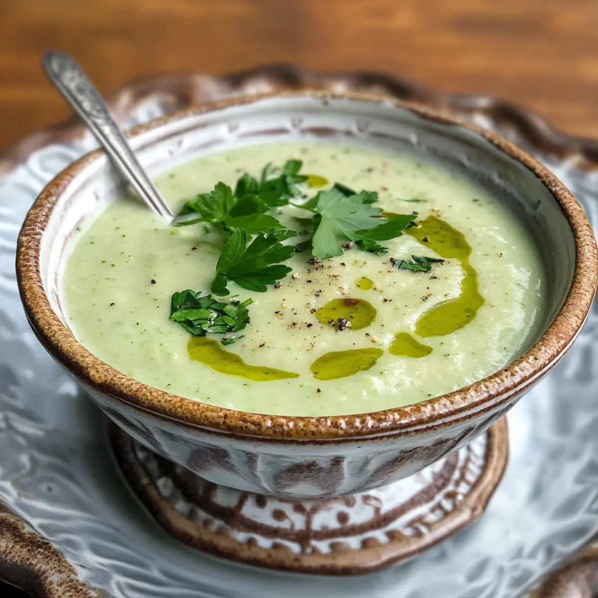 Genieße diese wunderbare kalte Zucchinisuppe als Teil eines leichten Sommertisches, der deine Sinne belebt und den Gaumen erfrischt.