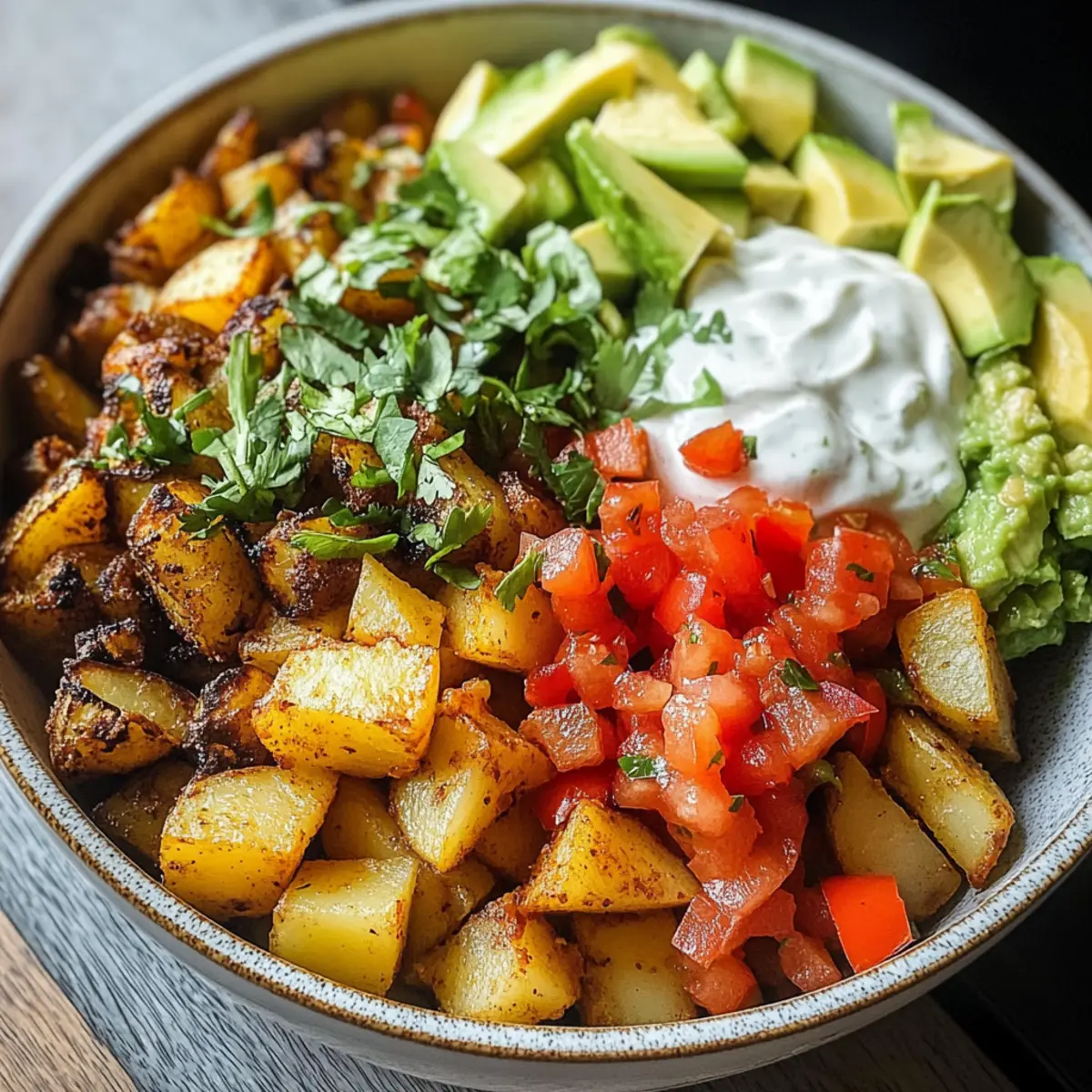 Cremige Guacamole: Dieses cremige Topping bringt eine zusätzliche Frische und verbindet sich harmonisch mit den gewürzten Kartoffeln.