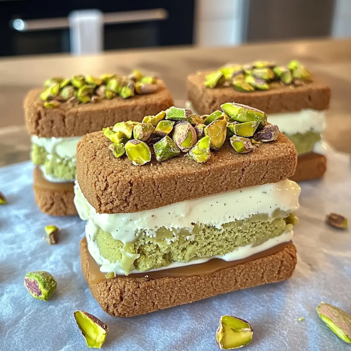 Fühlen Sie sich frei, Ihr Keks-Eis-Sandwich mit Pistazie nach Ihrem Geschmack zu gestalten!