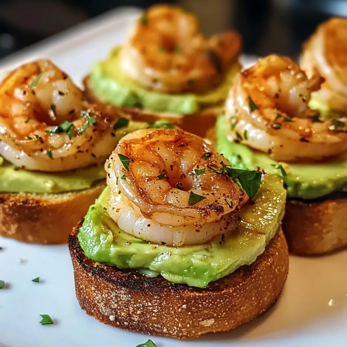 Knoblauchgarnelen-Crostini mit Avocado für Feste