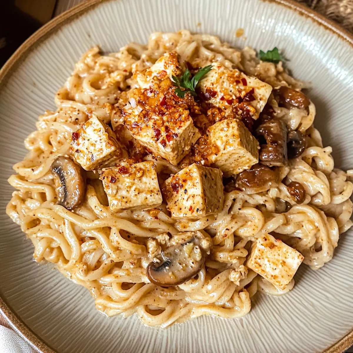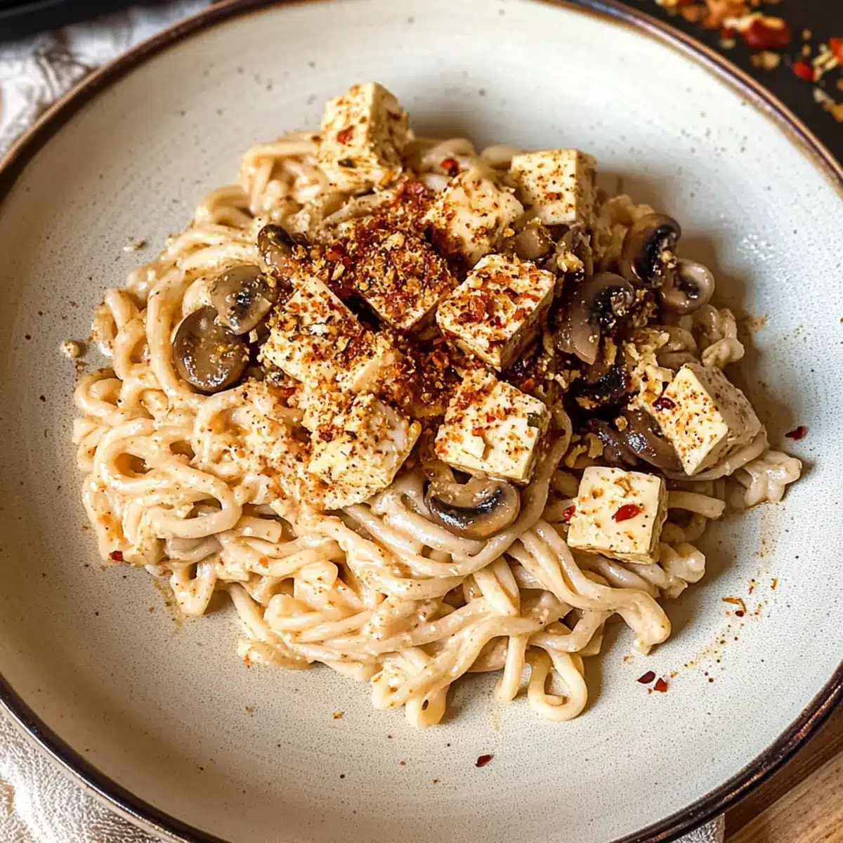 - Serviere die Pasta mit dem knusprigen Tofu.