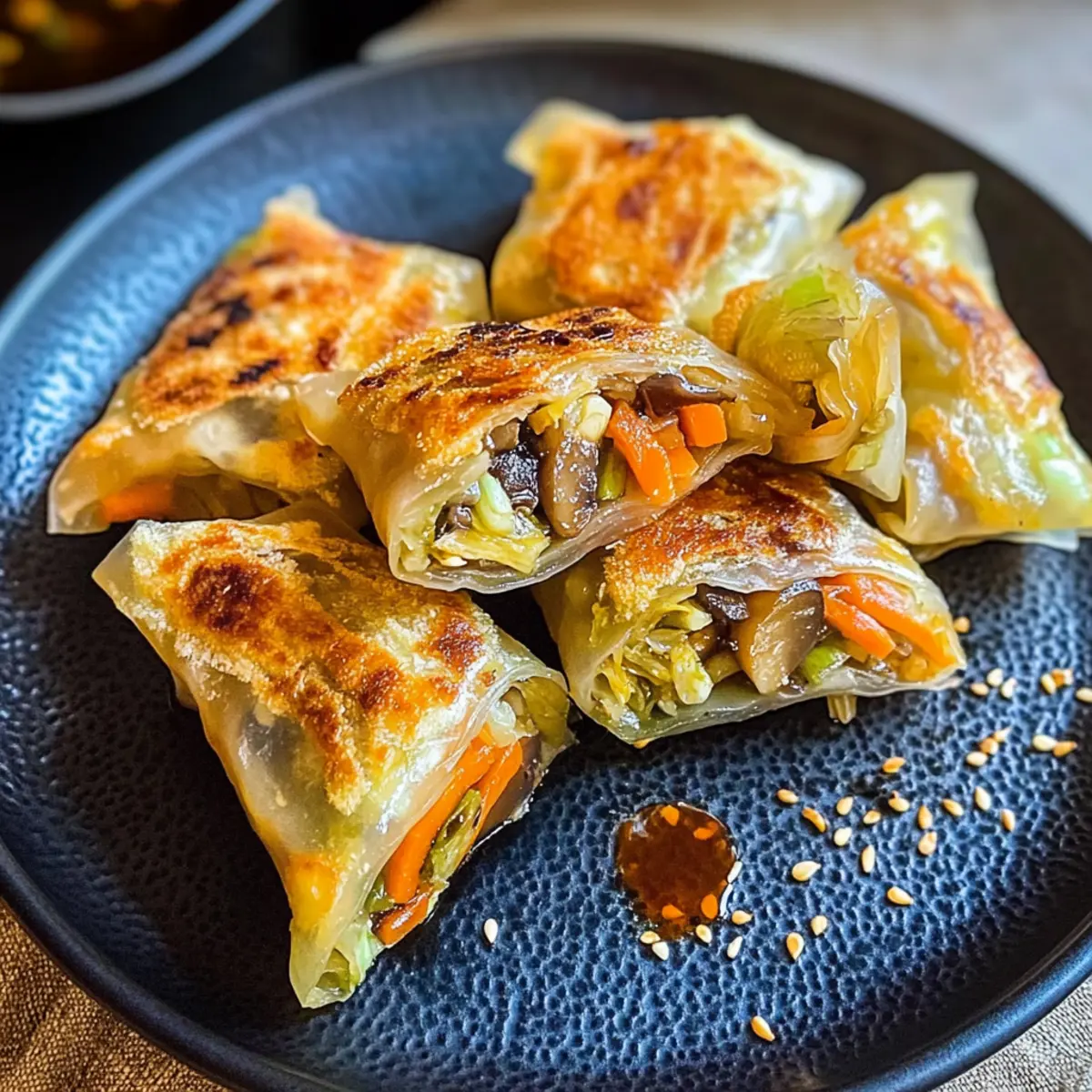 - Servieren: Die knusprigen Gemüsetaschen warm servieren, idealerweise mit einer Sauce aus Sojasauce und Sesam.