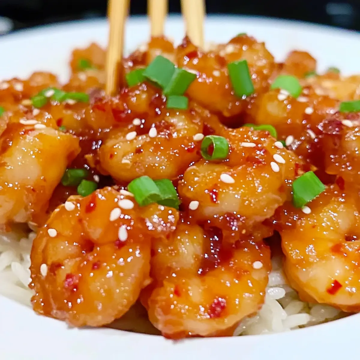 Köstlicher Genuss: Die Kombination aus süßem, klebrigem Orangensauce und frischen Garnelen schafft ein unvergleichliches Geschmackserlebnis.
