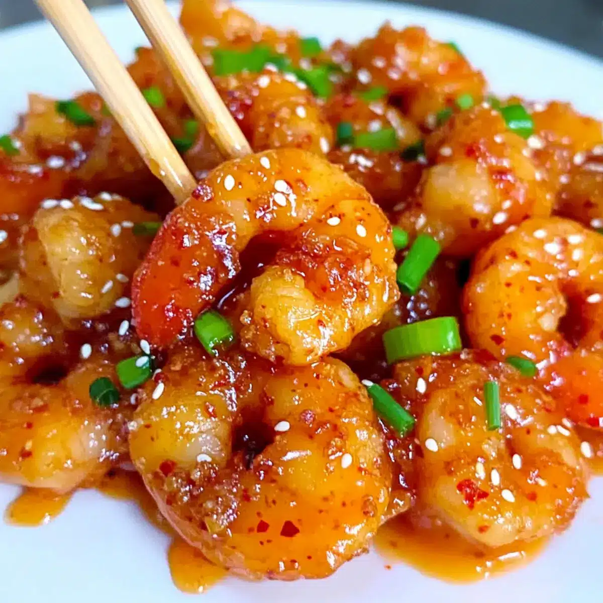- Garnitur überlegen: Frische Frühlingszwiebeln und Sesam sorgen nicht nur für Geschmack, sondern verbessern auch das visuelle Erlebnis deiner knusprigen Orange Garnelen.