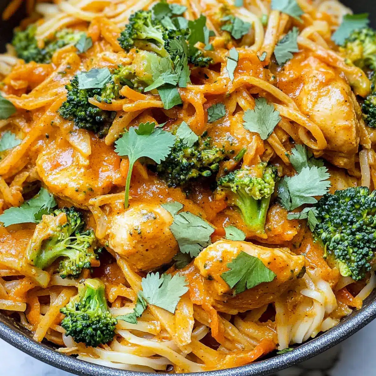 Aufwärmen: Zum Aufwärmen die Reste in einem Topf bei mittlerer Hitze erhitzen. Füge ein wenig Wasser oder Kokosmilch hinzu, um die Sauce wieder cremig zu machen und die Nudeln nicht auszutrocknen.