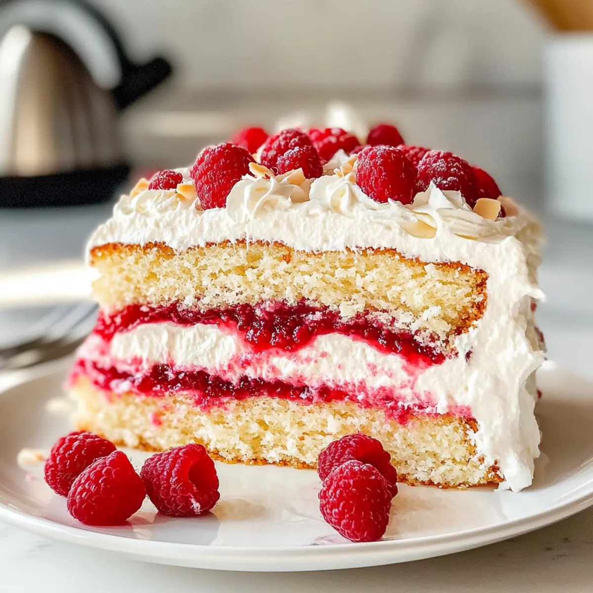 Kokosnuss-Himbeer-Kuchen mit Kokosnusscreme: Fruchtig und fluffig