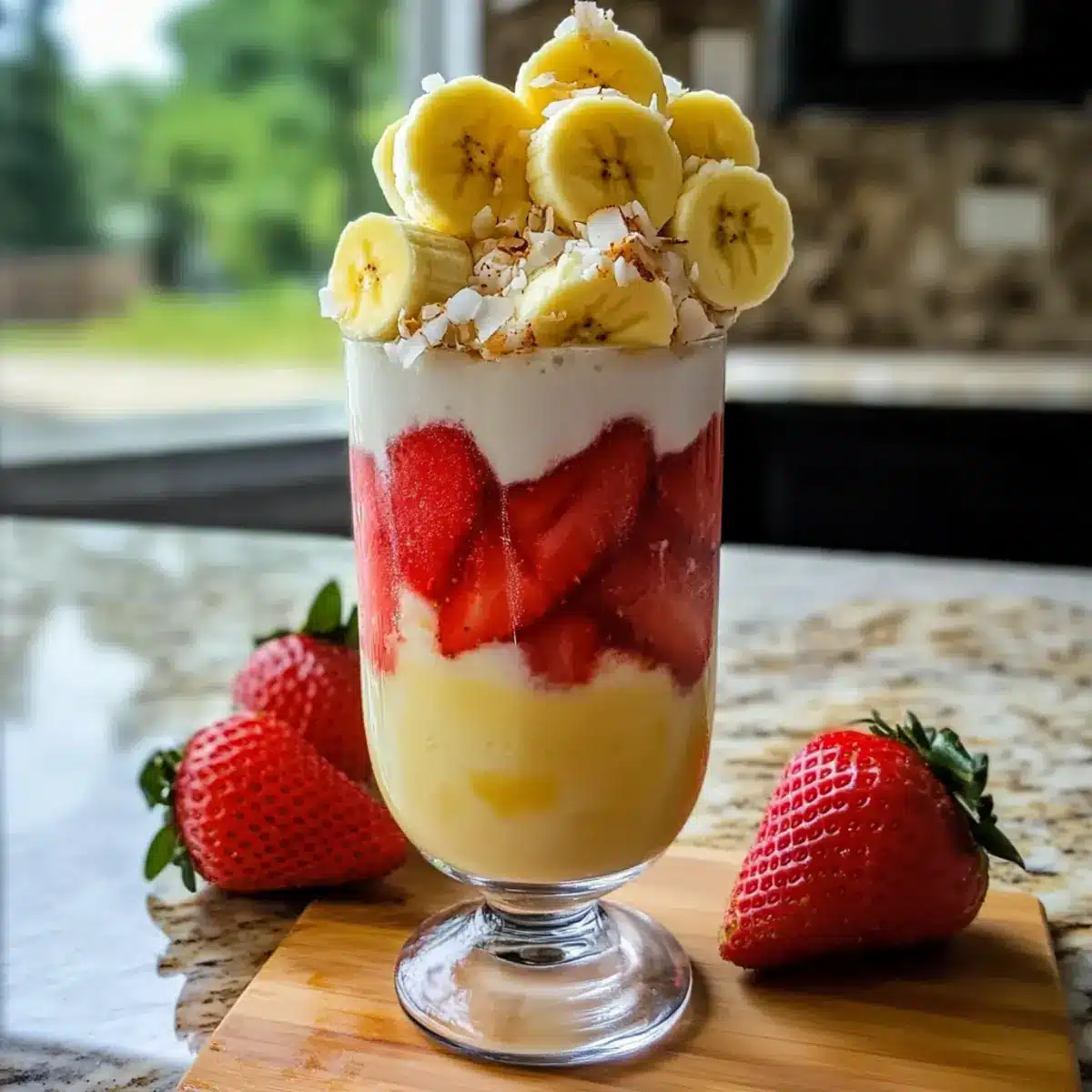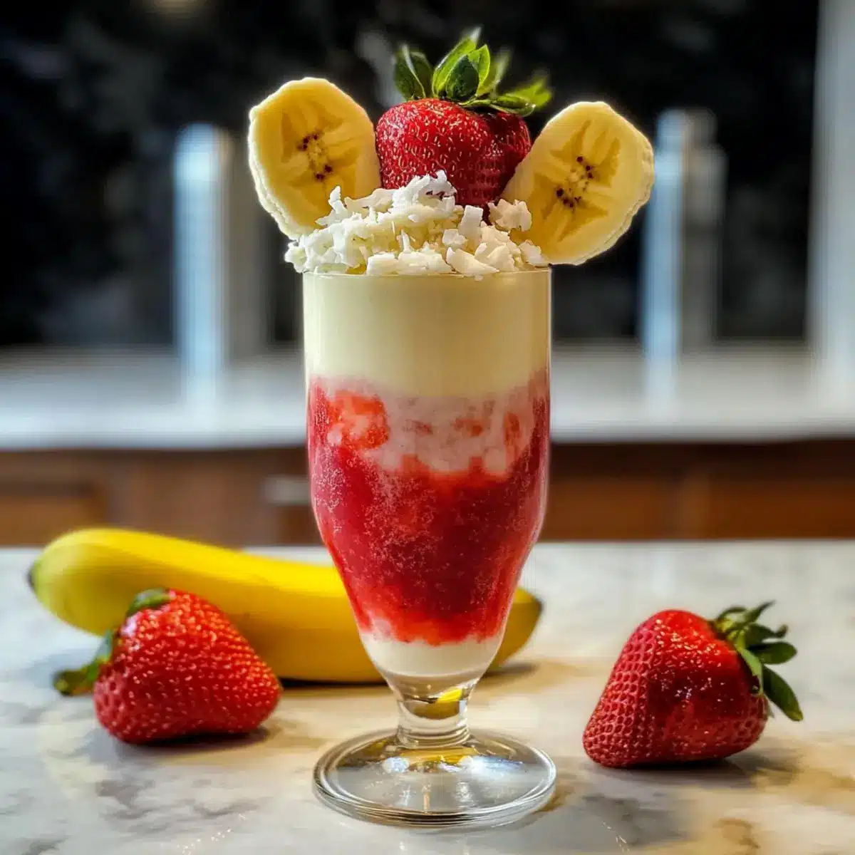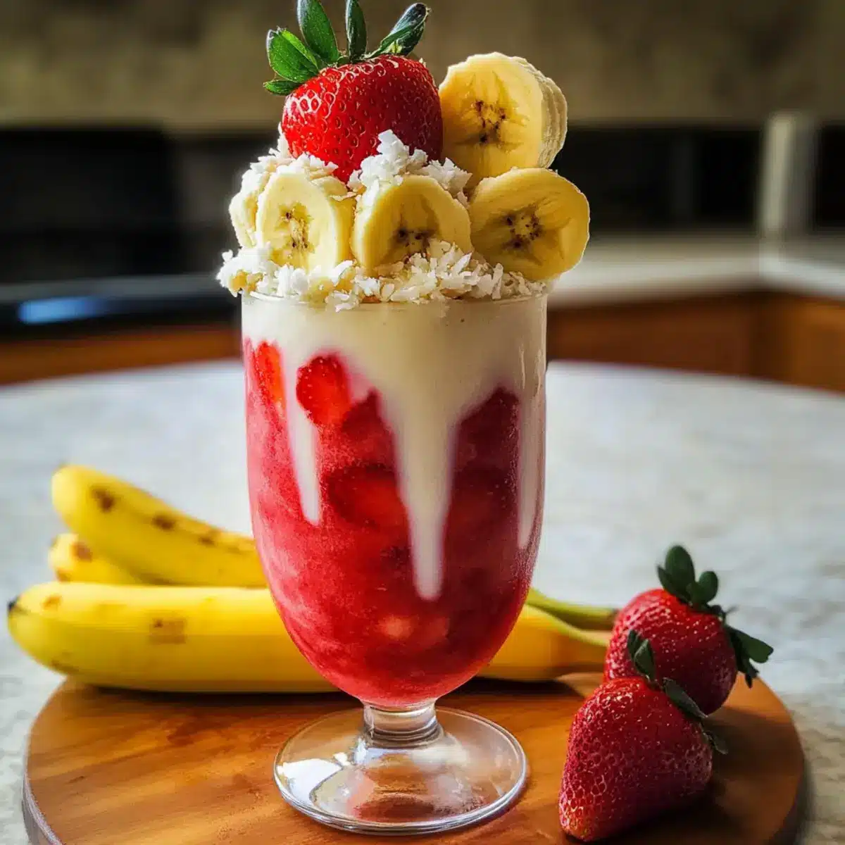 Stellen Sie sich vor, Sie sitzen an einem sonnigen Strand, während die Wellen sanft an den Ufer schlagen und Sie einen riesigen, fruchtigen Cocktail in der Hand halten. So ein Gefühl vermittelt das Lavafluss Getränk – ein erfrischender Genuss, der die Aromen von piña colada und Erdbeerdaiquiri majestätisch miteinander kombiniert. Die strahlende rote Erdbeerbasis, gekrönt von einer samtigen Schicht aus Banane und Kokosnuss, sorgt nicht nur für einen ästhetischen Höhepunkt, sondern auch für schnell zuzubereitende Erfrischung an heißen Tagen. Ob im Garten mit Freunden oder als kleine Auszeit nach einem langen Tag: Dieses tropische Geschmackserlebnis ist in nur fünf Minuten bereit. Neugierig auf die genauen Zubereitungsschritte und einige kreative Variationen? Lassen Sie uns gemeinsam in die Welt des Lavafluss Getränks eintauchen!