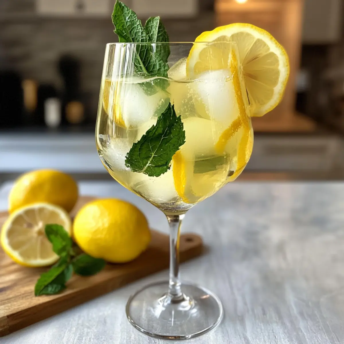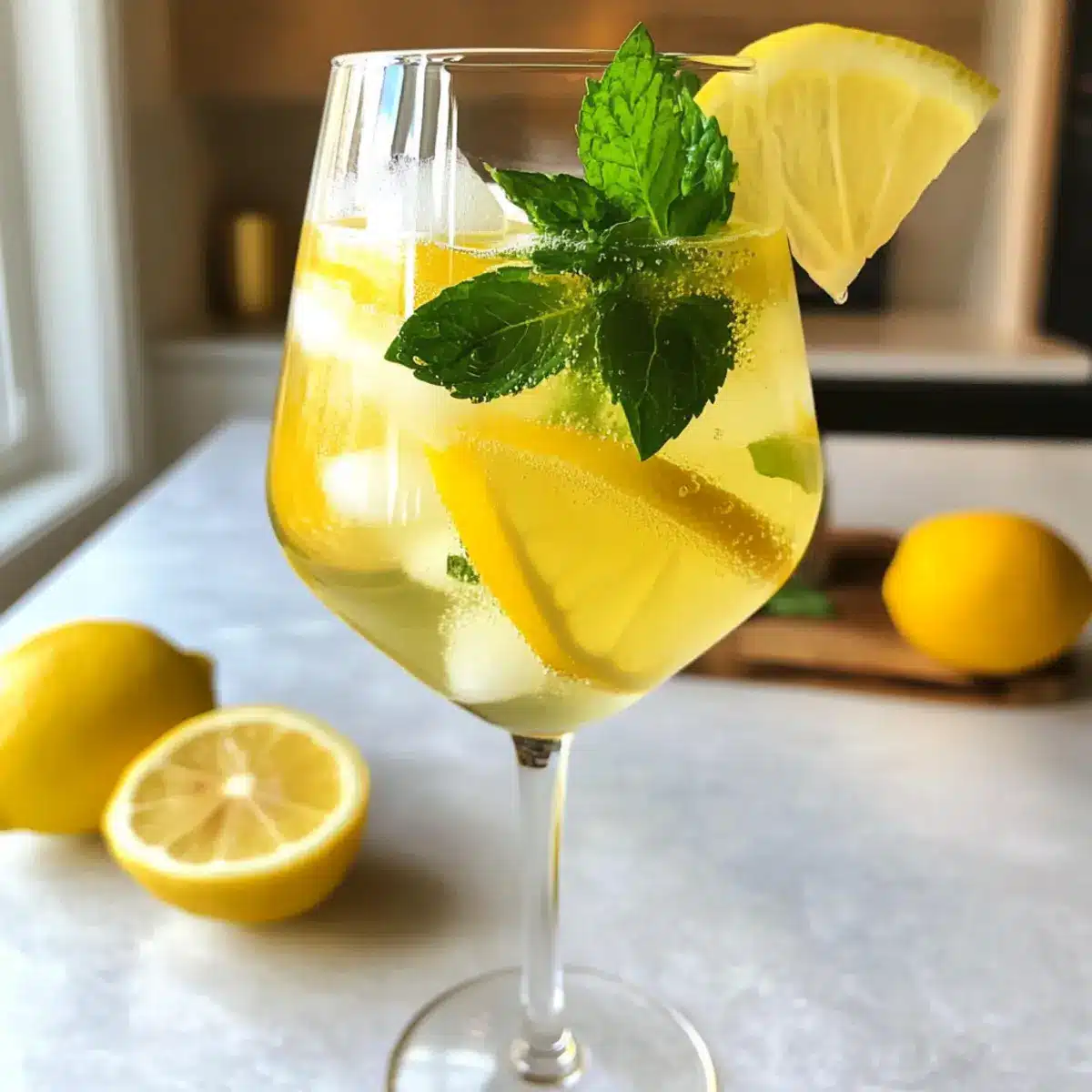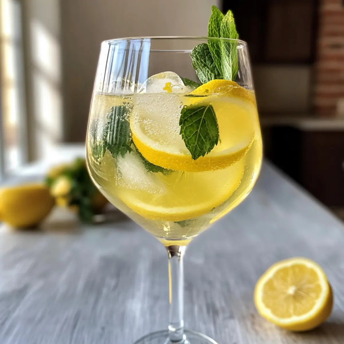 Schneide dünne Zitronenscheiben und füge sie als Garnitur in den Drink. Optional kannst du auch ein paar frische Minzblätter hinzufügen, um deinem Limoncello Spritz einen aromatischen Kick zu verleihen. Die frischen Farben und Aromen werden deinen Drink visuell und geschmacklich aufwerten.