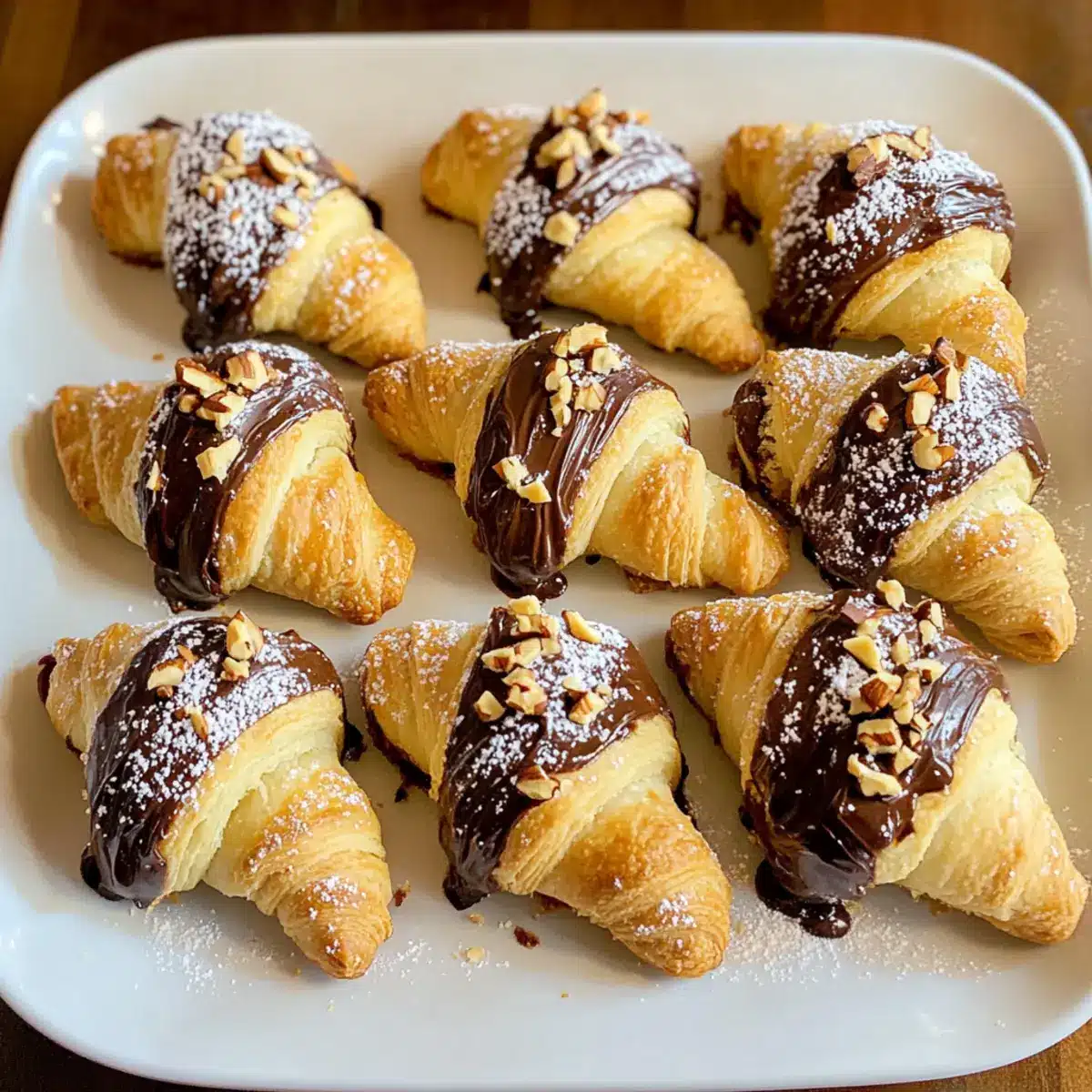 • Garnitur-Möglichkeiten: Experimentiere nach dem Backen mit verschiedenen Toppings wie Schokolade oder Nüssen, um den Geschmack deiner Nutella-Hörnchen vielseitig zu gestalten.
