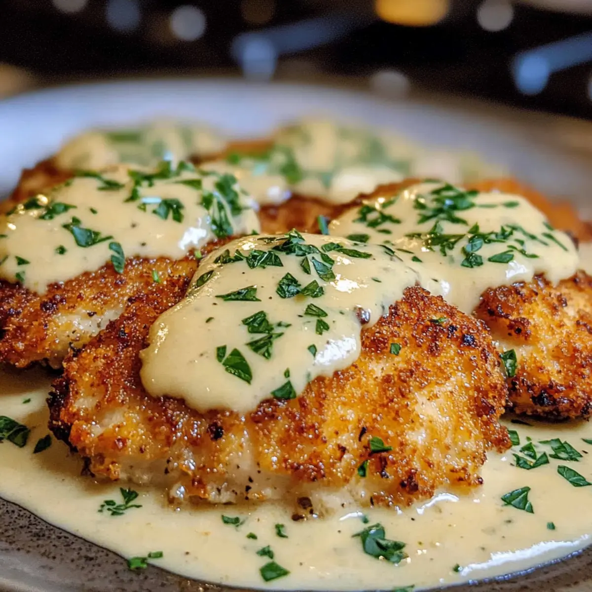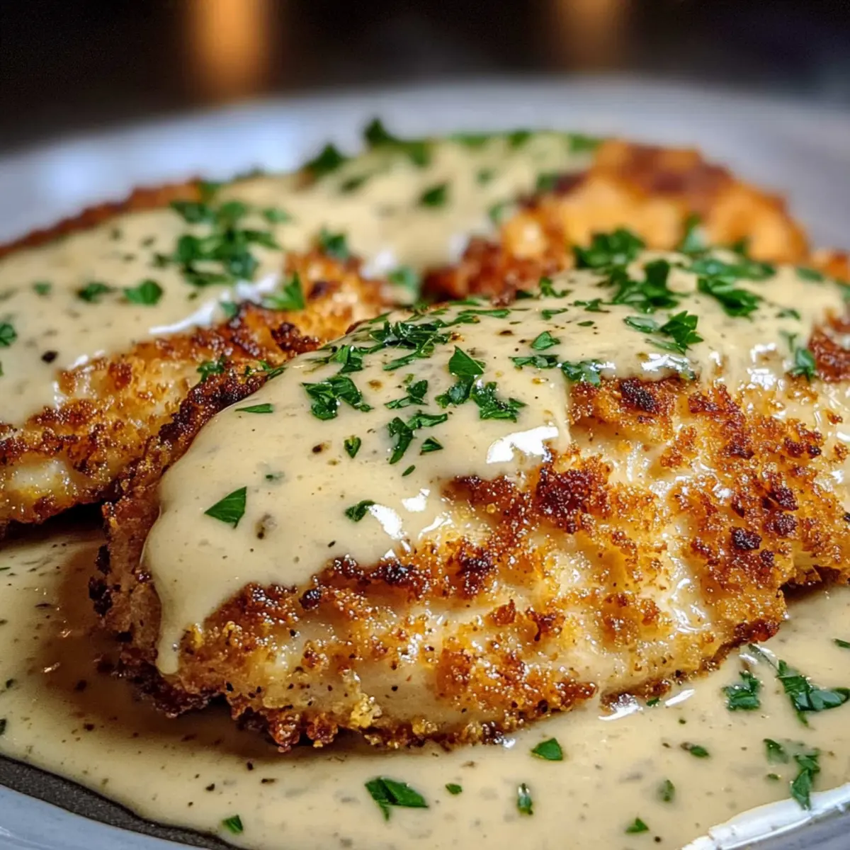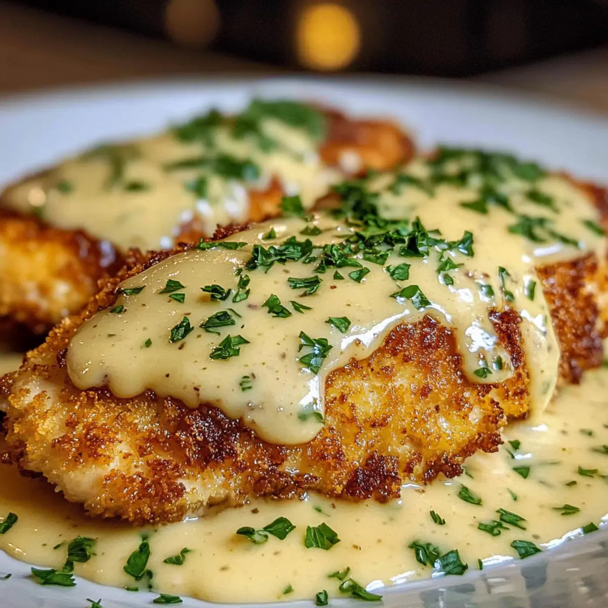 Parmesan-Kruste Hühnchen mit cremiger Knoblauchsauce