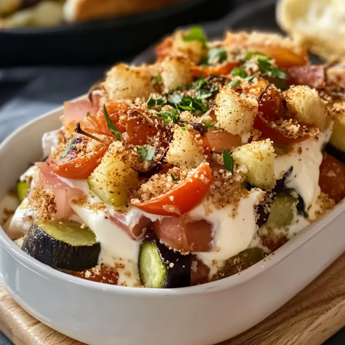 Die Idee, ein Antipasti Tiramisu zu kreieren, kam mir eines Abends, als ich in der Küche zwischen frischen Kräutern und bunten Gemüsevarianten stand. Dieses pikante Antipasti Tiramisu mit Brot Crumble vereint die köstlichen Aromen des Mittelmeers in einem eleganten Gericht, das sowohl einfach zuzubereiten als auch vegetarisch ist. Die cremige Frischkäse-Schicht harmoniert perfekt mit den zarten, gerösteten Gemüse und dem knusprigen Brot-Crumble – eine Explosion an Texturen, die bestimmt jedem den Tag versüßen wird. Ob als Vorspeise beim nächsten Dinner oder als leichtes Mittagessen, dieses Rezept bringt frischen Wind auf deinen Tisch. Neugierig, wie du mit wenigen Zutaten einen wahren Gaumenschmaus zaubern kannst? Lass uns gleich mit dem Kochen beginnen!
