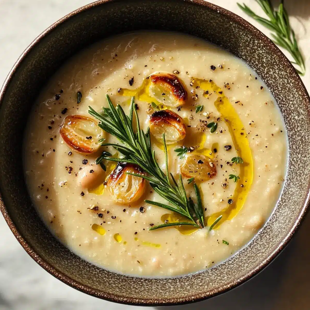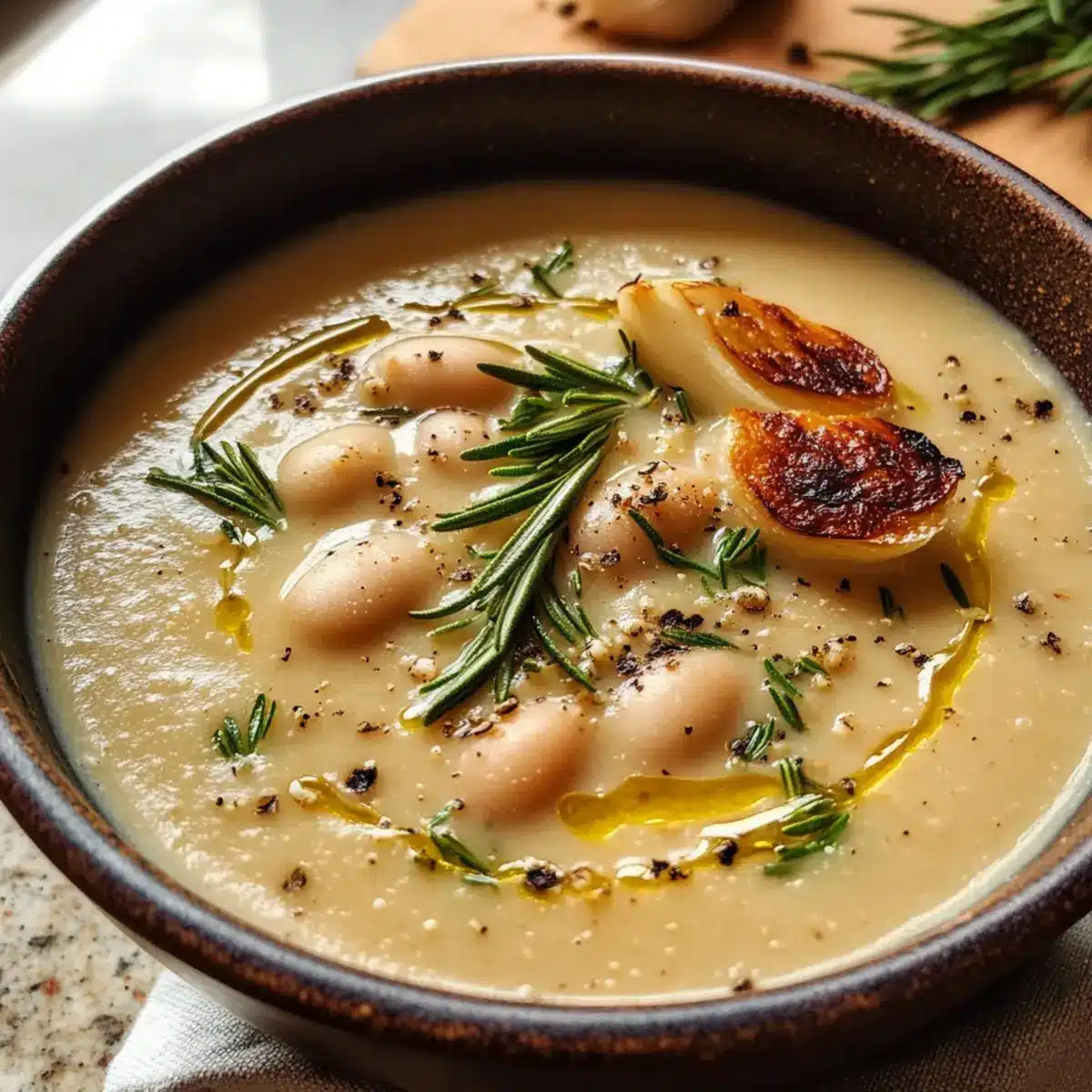Rosmarin und geröstete Knoblauch-Weiße-Bohnen-Suppe