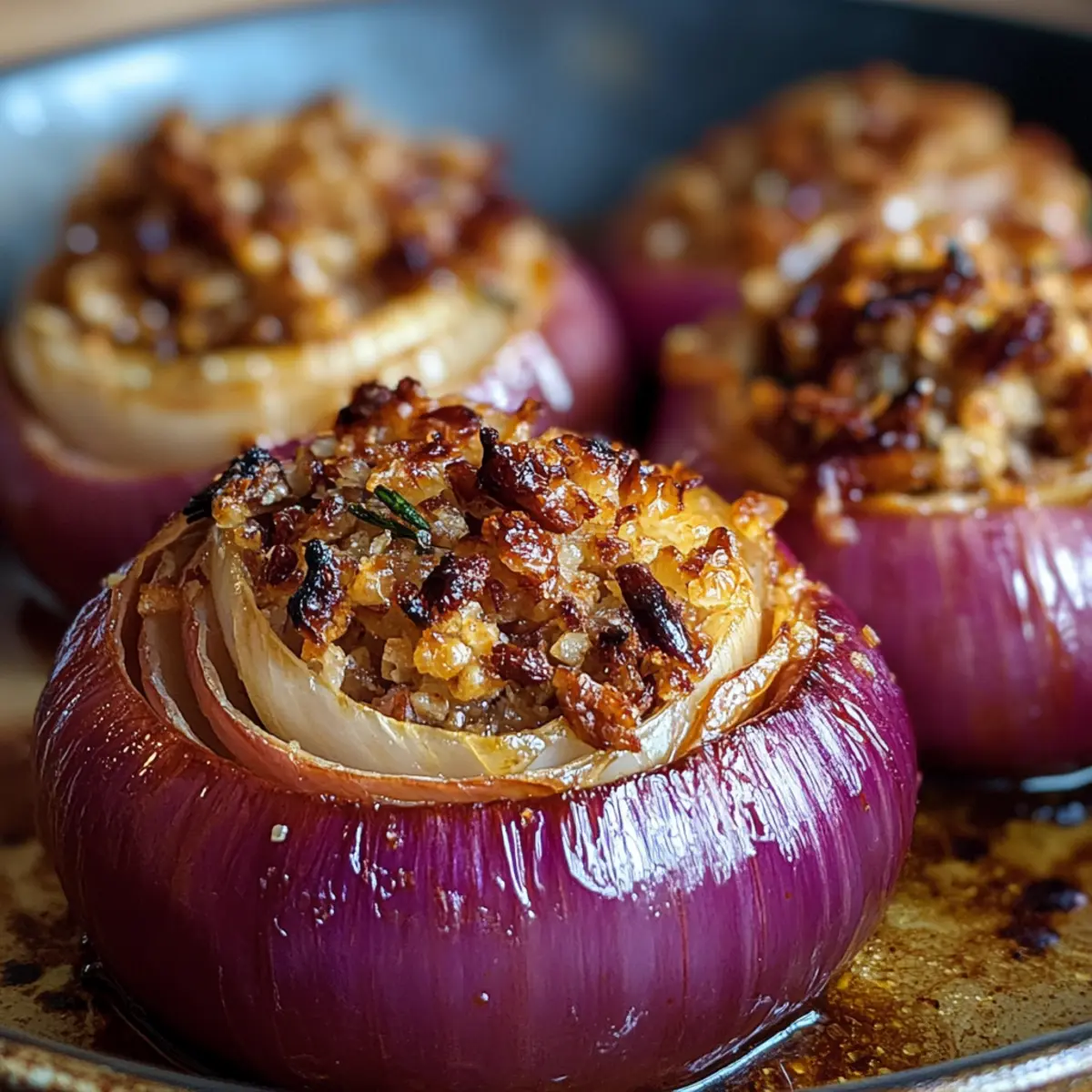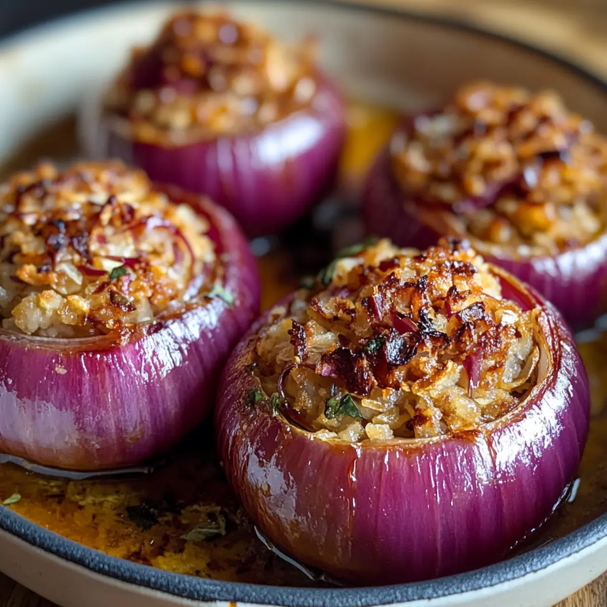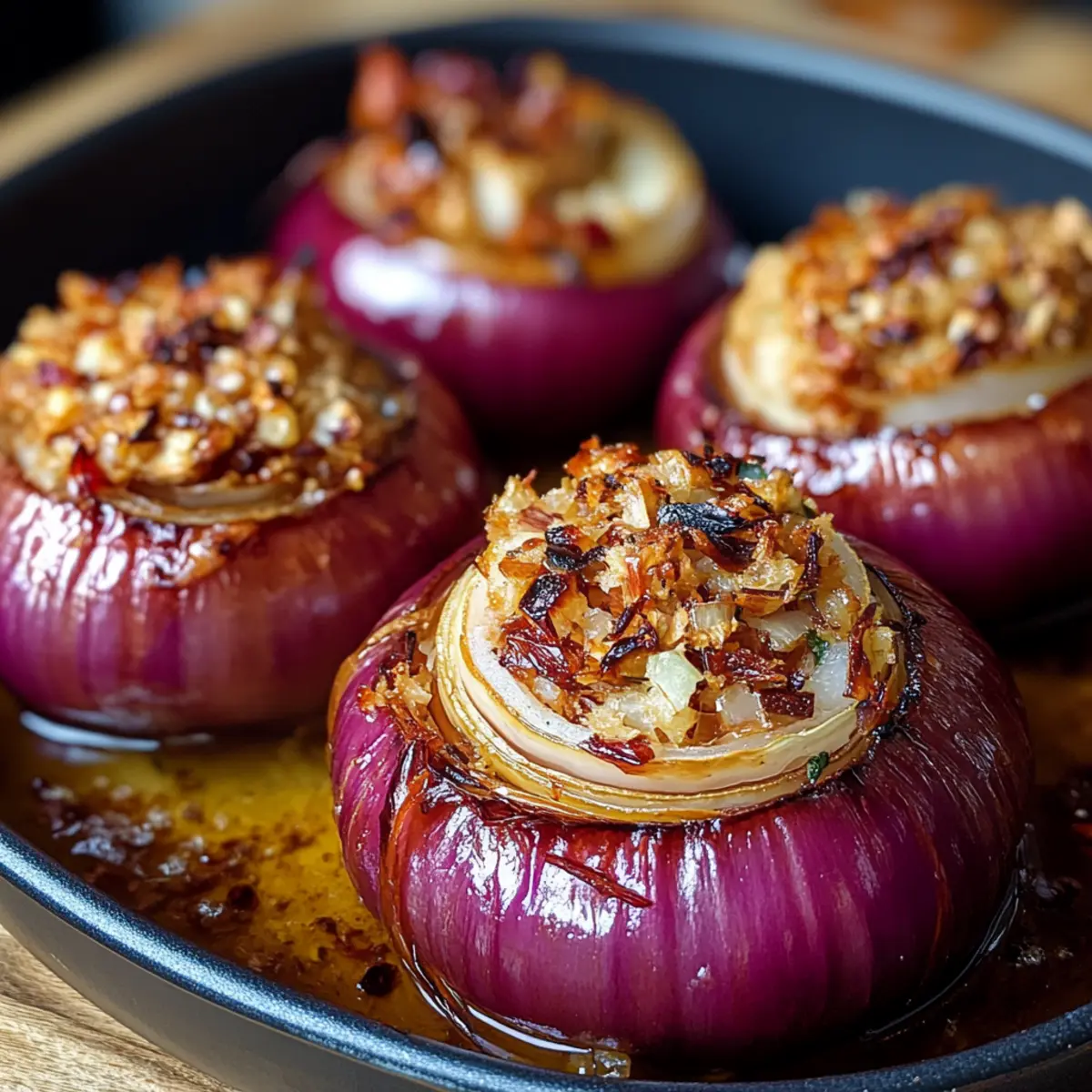 Rote Zwiebeln perfekt gefüllt und knusprig gebraten