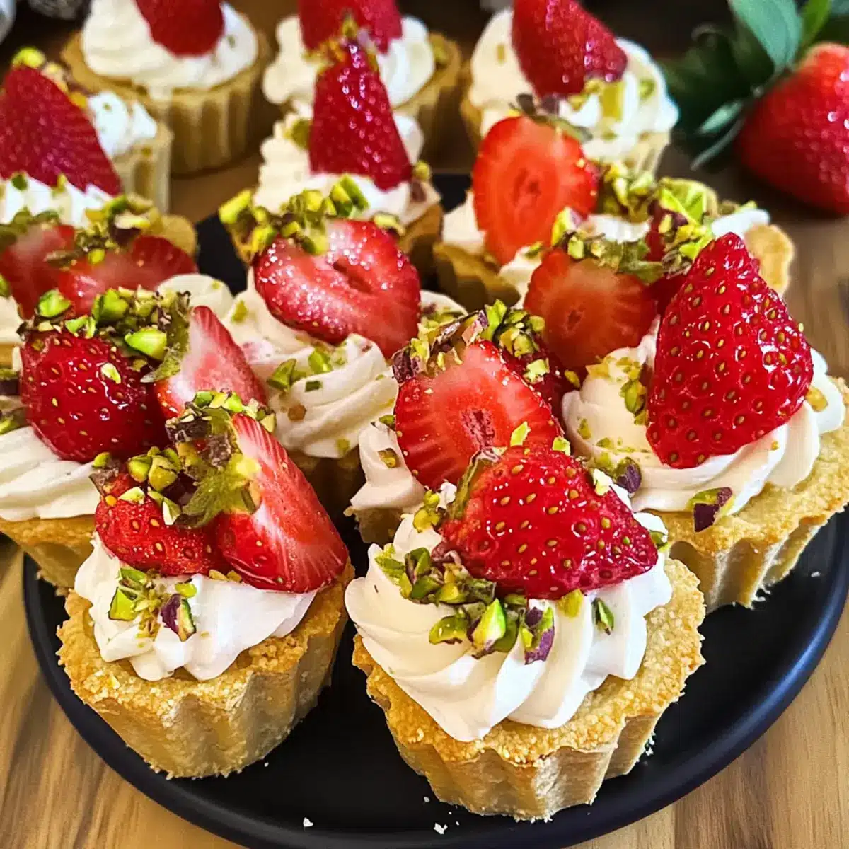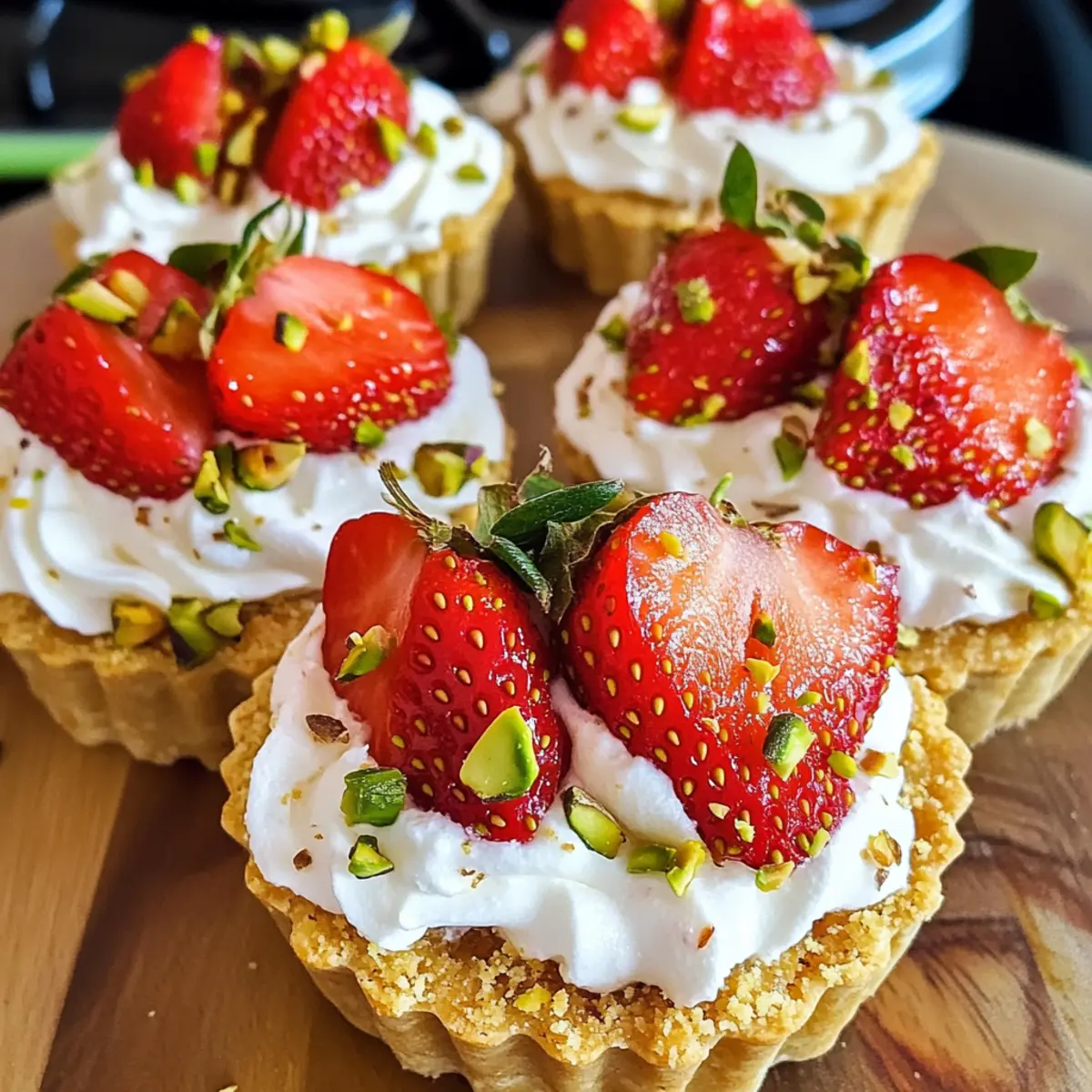 Serving: Vor dem Servieren kannst du die Törtchen mit frischen Erdbeeren und Pistazien dekorieren, um das Optische und Geschmackliche aufzufrischen.