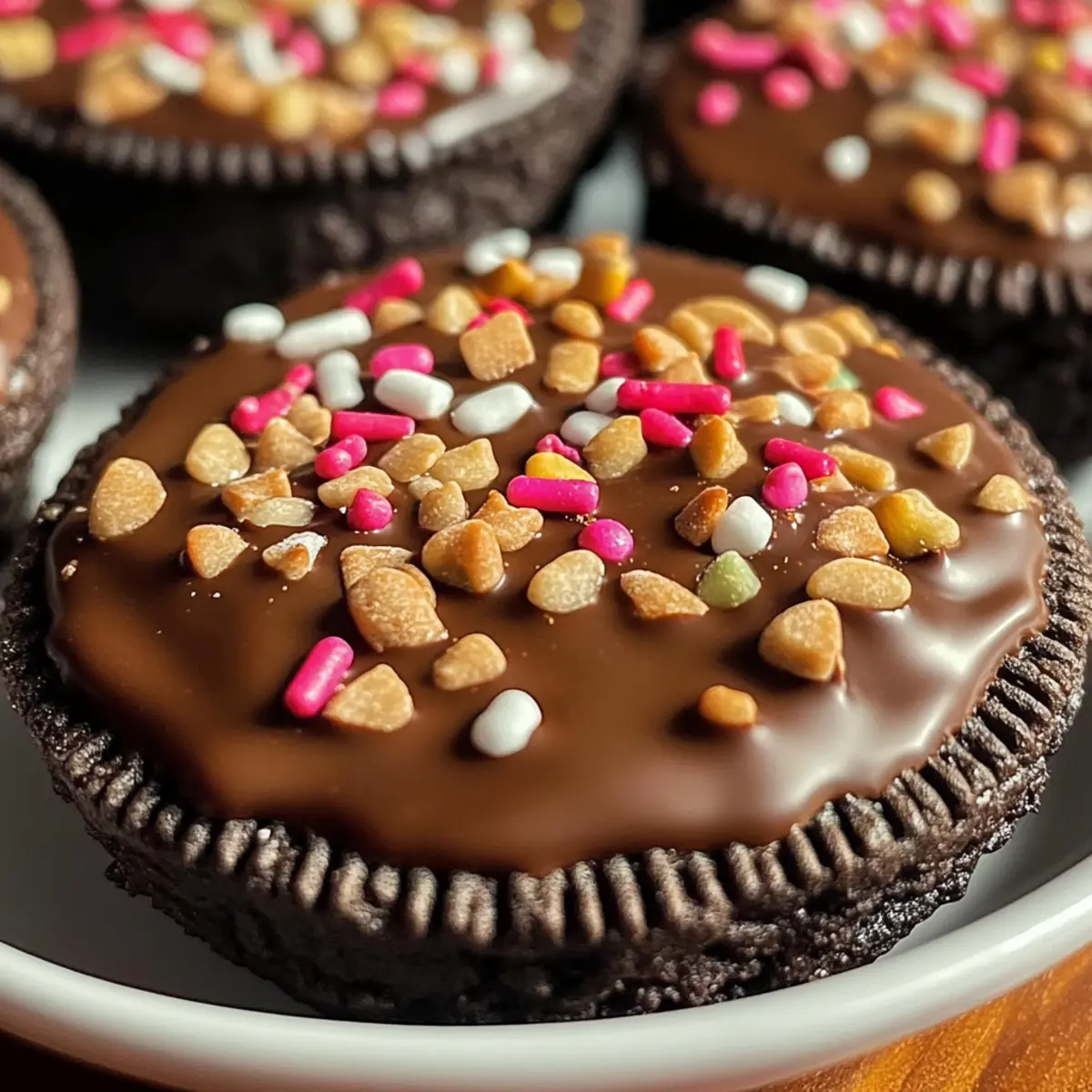 - Die geschmolzenen Oreo-Kekse auf das Backblech legen und mit Streuseln dekorieren.