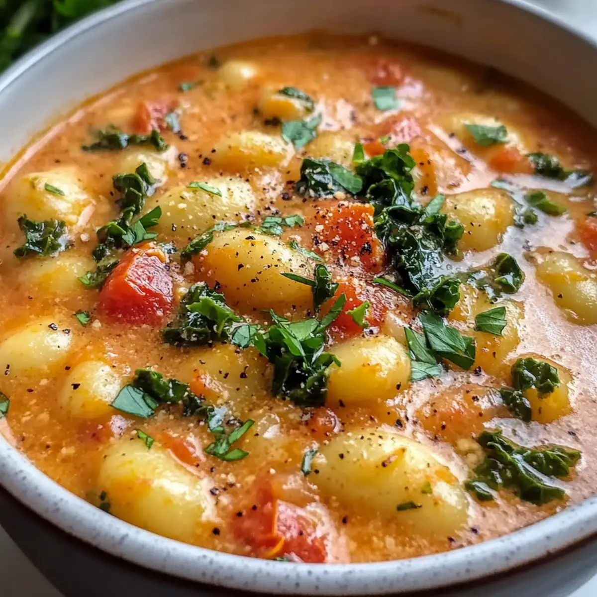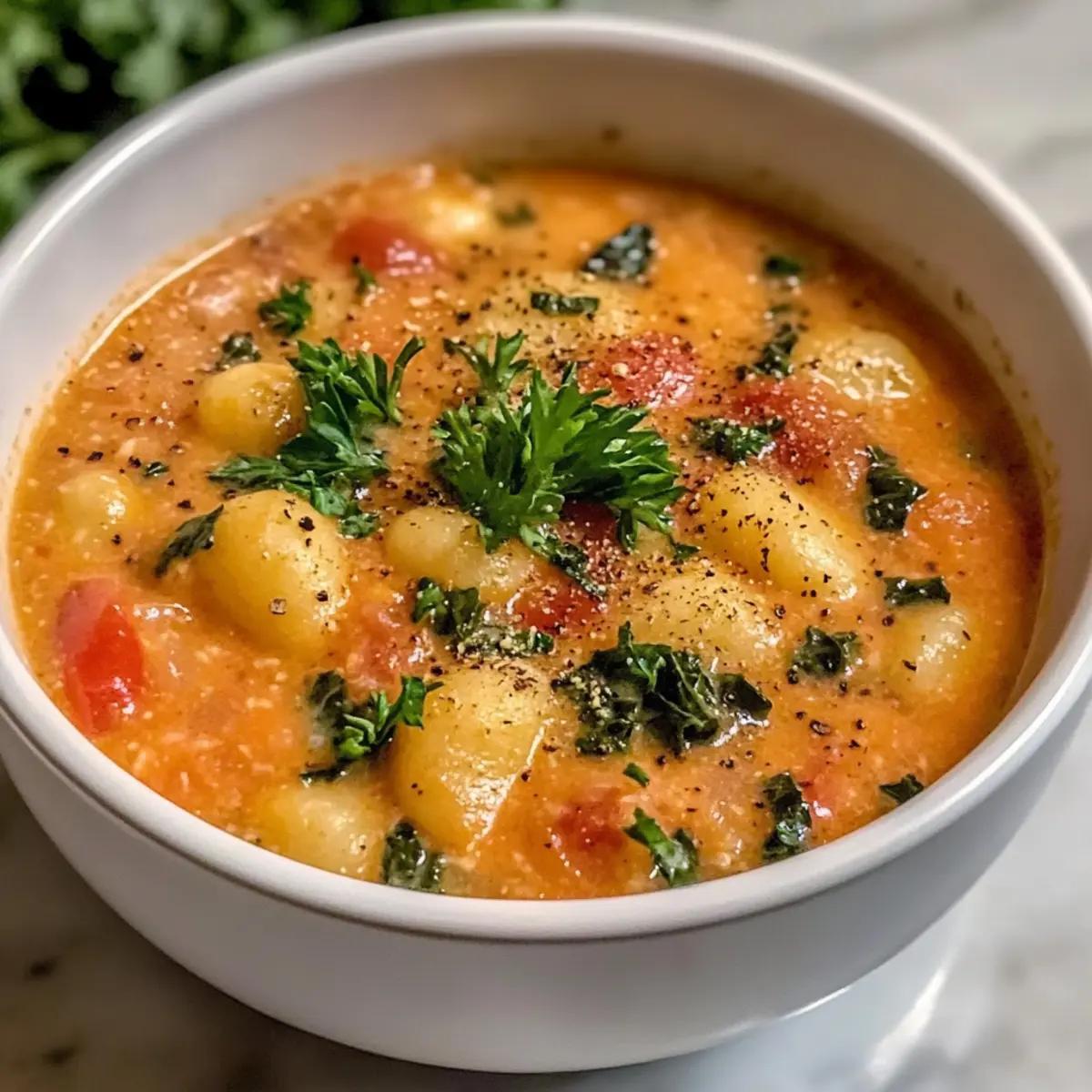 Schmecke die Suppe mit Salz und Pfeffer ab, um die Aromen zu verstärken. Serviere deine Sonnengetrocknete Tomaten Gnocchi Suppe heiß, garniert mit frischer Petersilie für einen erfrischenden Farbtupfer.