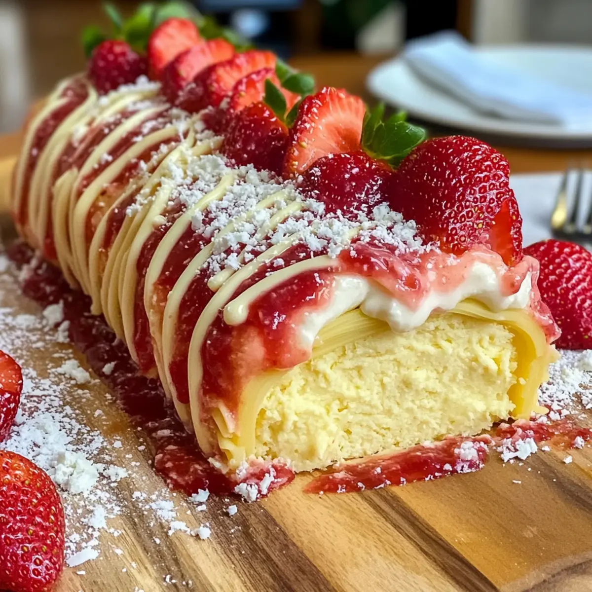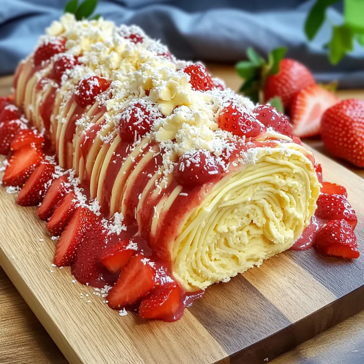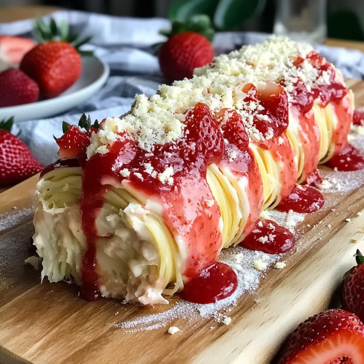 Der erste Biss in diese No-Bake Spaghetti-Eis-Dessertrolle ist wie ein Sommertraum auf dem Teller! Die Kombination aus cremiger Vanillefüllung und fruchtiger Erdbeersauce bringt nicht nur Farbe ins Spiel, sondern auch unvergessliche Geschmackserlebnisse, die alle Sinne ansprechen. Dieses Rezept ist unglaublich einfach zuzubereiten, ganz ohne Backen – perfekt für warme Tage und gesellige Anlässe. Ob als erfrischende Abenddessert oder als Highlight auf der nächsten Grillfeier, diese Dessertrolle wird garantiert zum neuen Favoriten in deiner Rezeptsammlung. Bist du bereit, die Küche in ein Paradies für Naschkatzen zu verwandeln? Lass uns loslegen!