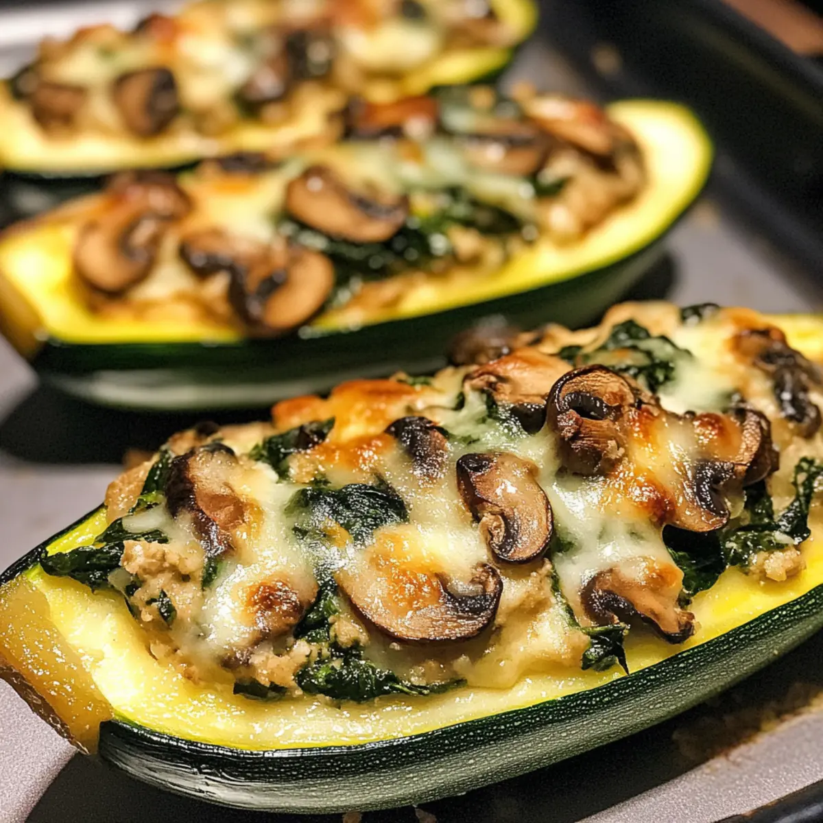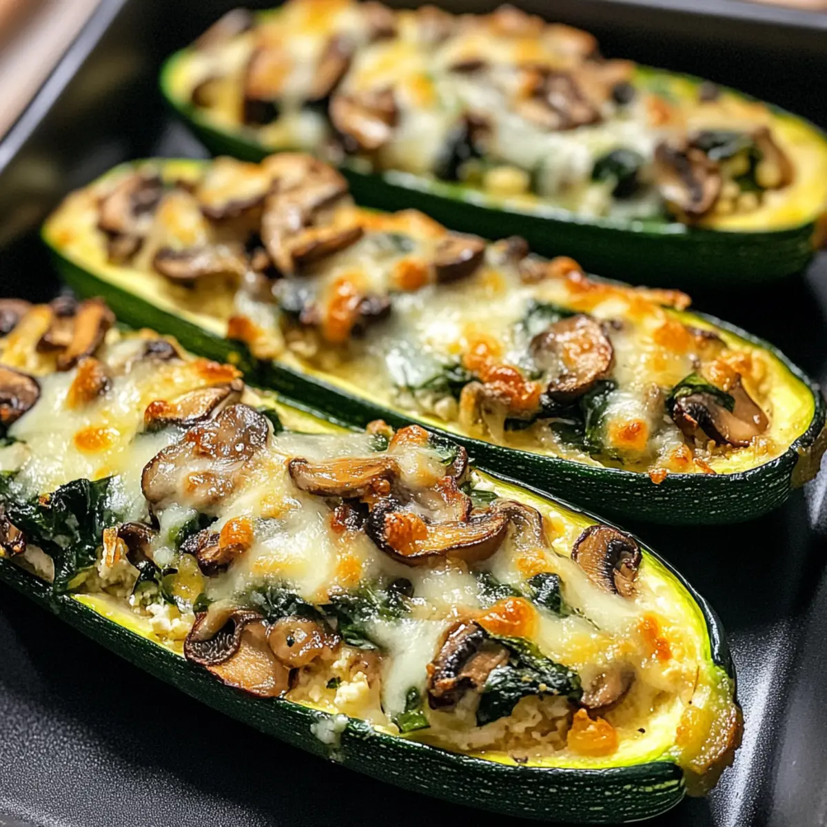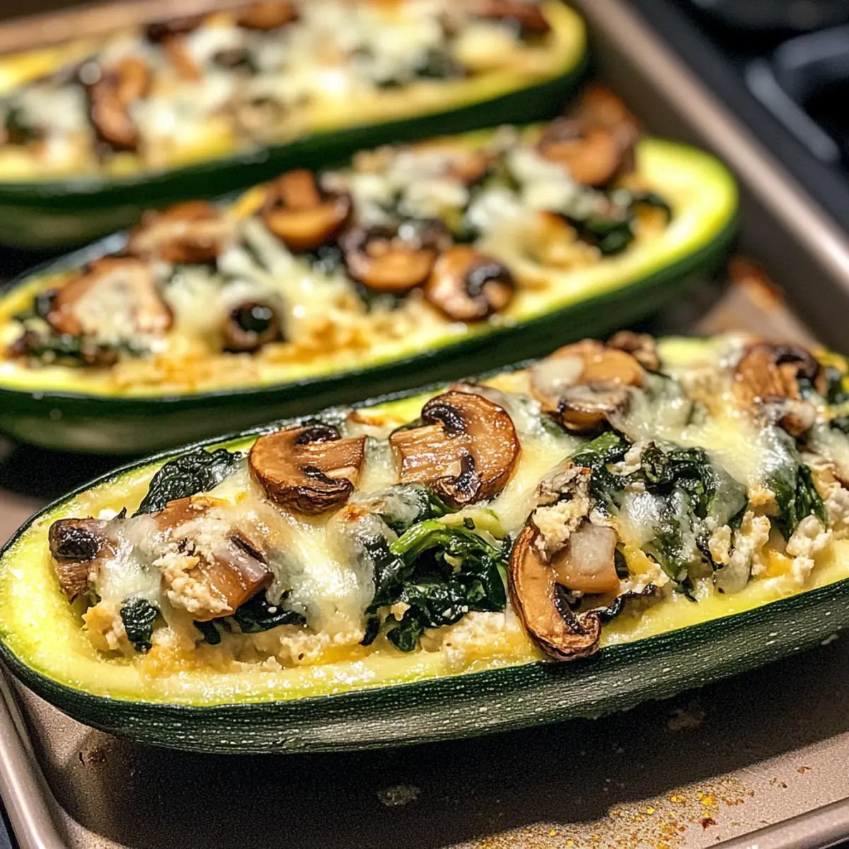 Spinat, Pilz und Ricotta Zucchini Boote Deluxe