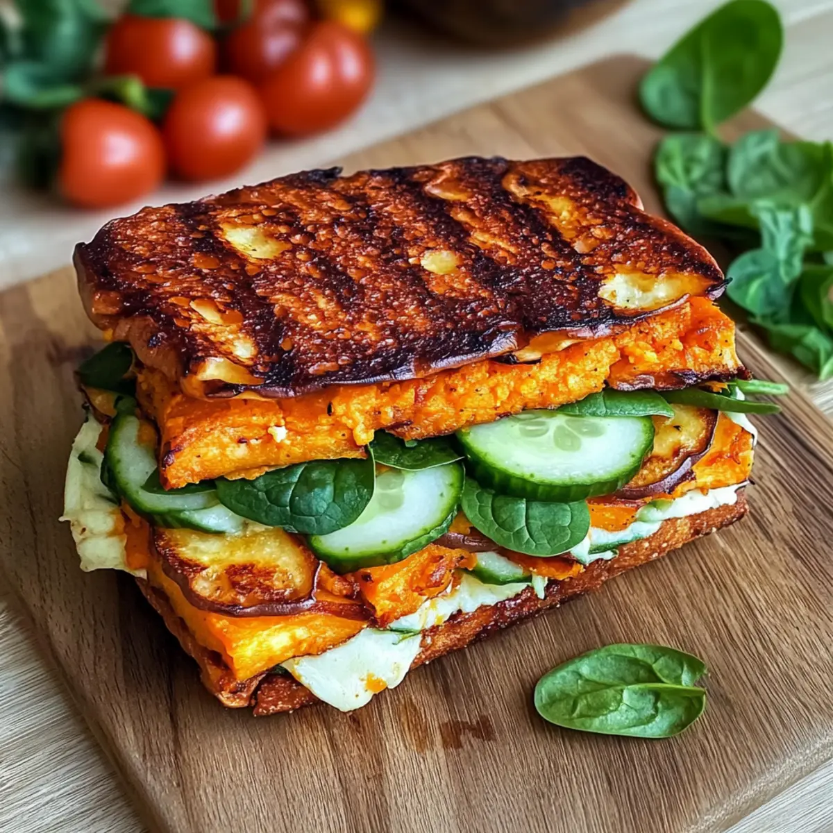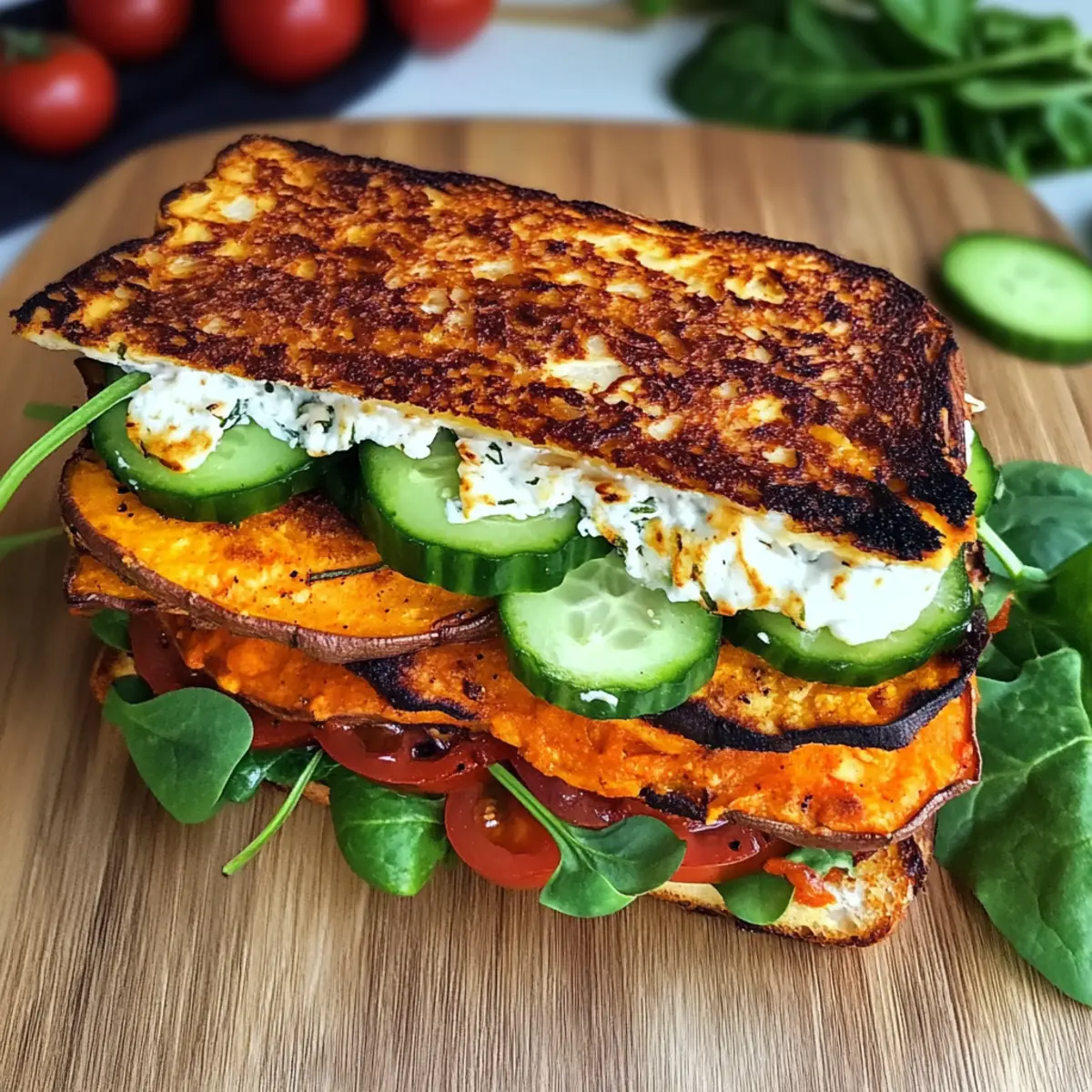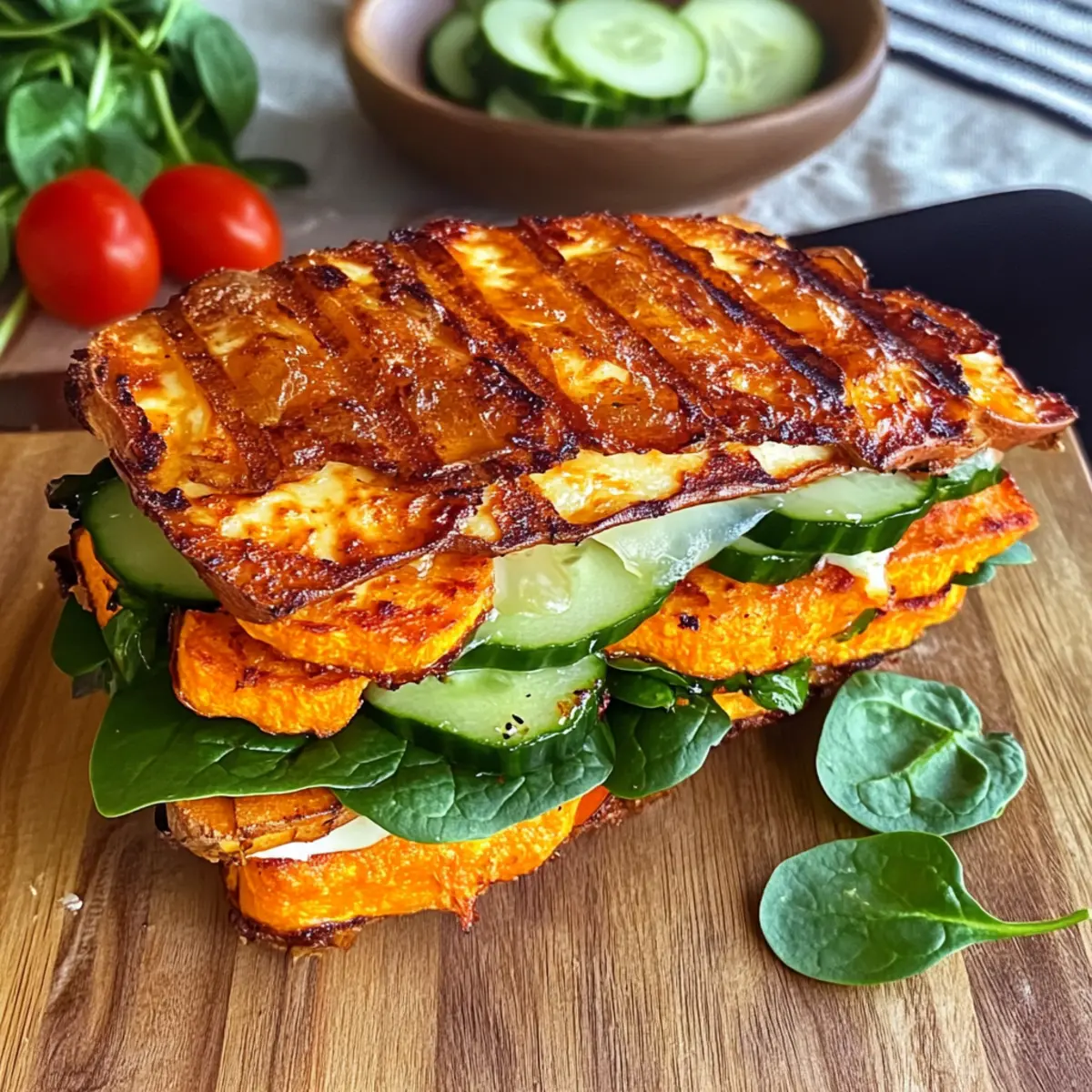 Süßkartoffel – die Basis des Sandwichs, sorgt für Süße und Struktur. Kann mit Zucchini oder Auberginen ersetzt werden für eine kalorienärmere Option.