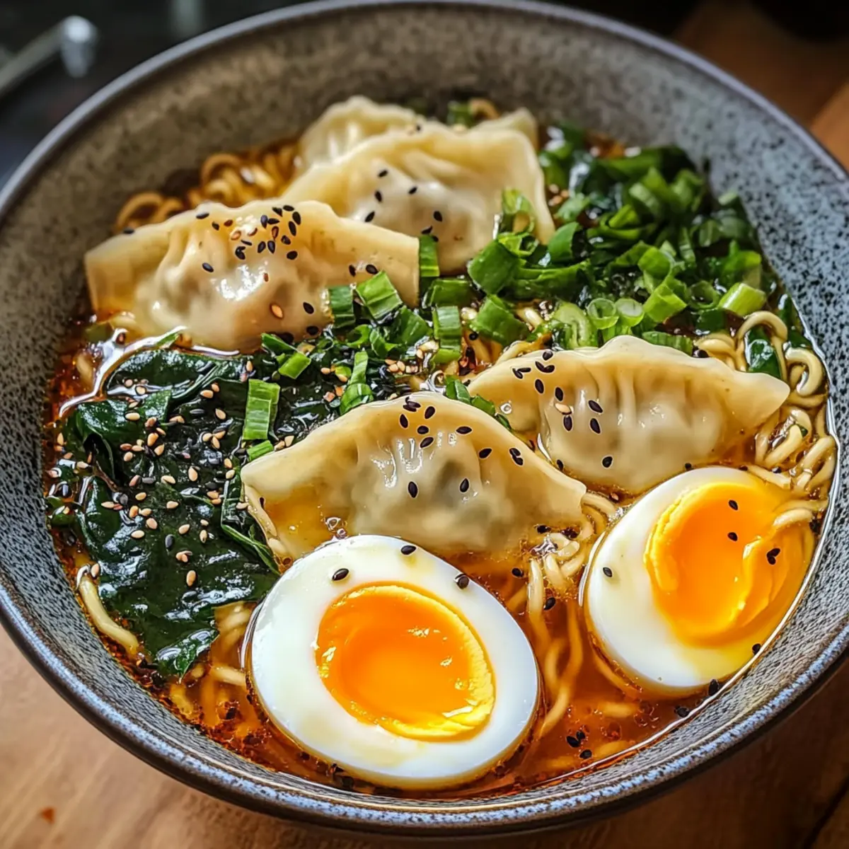 • Diese köstliche Teigtaschen Ramen Schüssel ist einfach zuzubereiten und vielseitig anpassbar!