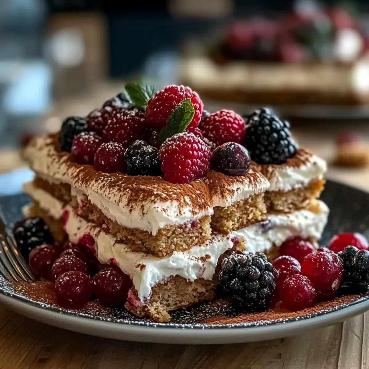 Tiramisu mit Beeren für eine einfache Vorbereitung