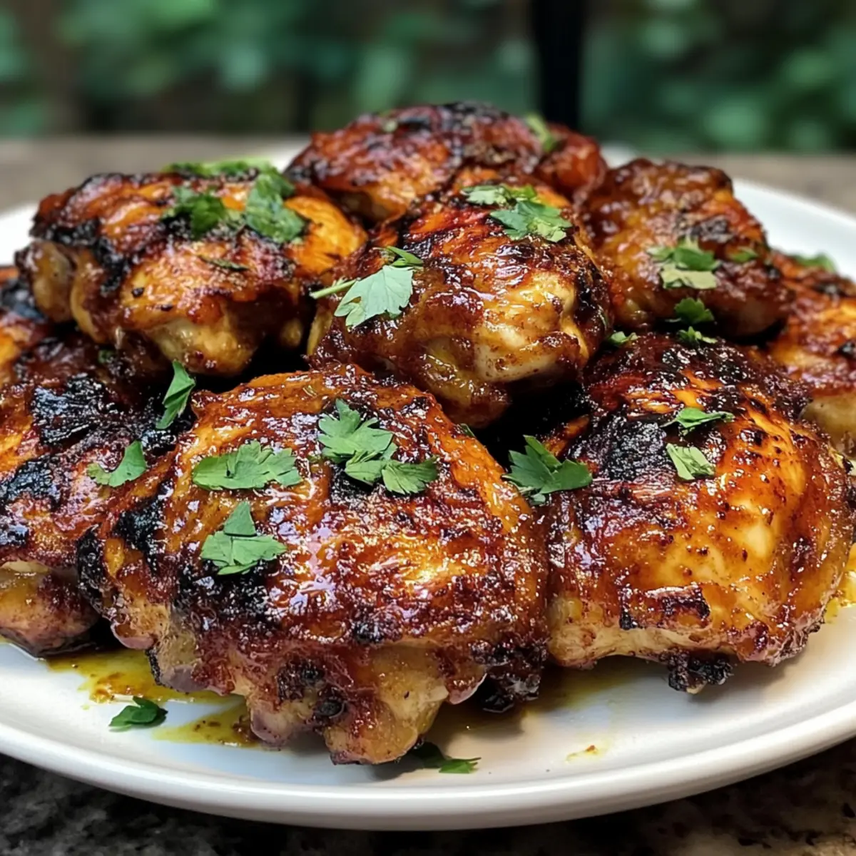 - Entferne die Hähnchenschenkel vom Grill und lasse sie 5 Minuten ruhen, bevor du sie servierst.